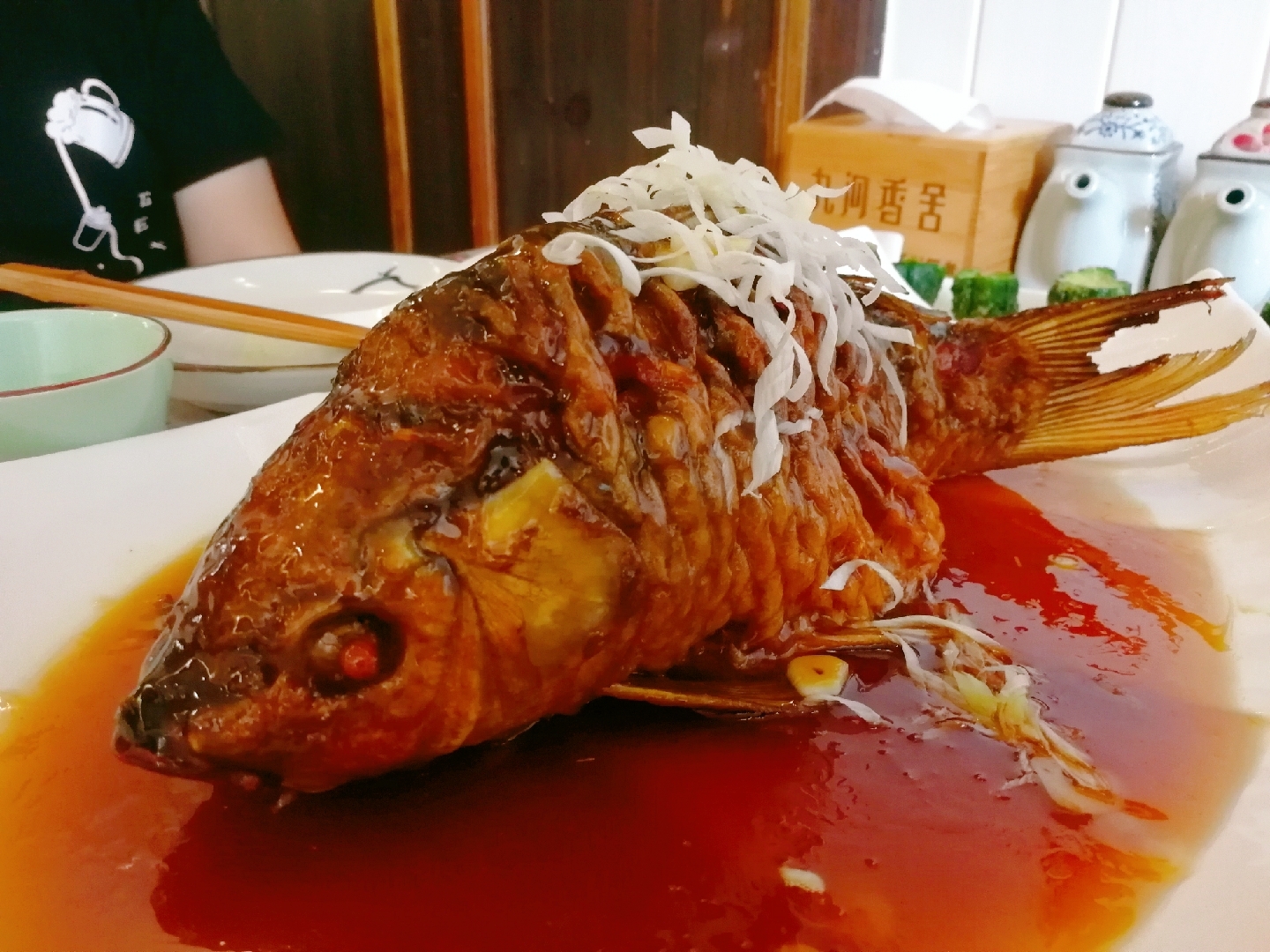 第一次吃罾蹦鲤鱼,是误打误撞的进了个饭店,叫津菜典藏,后来才知道这里罾蹦鲤鱼还排第一。点了一个,酸甜口,还真好吃,鲤鱼是带着鳞炸的,炸的通透,再浇上糖醋汁,外焦里嫩!
