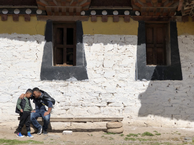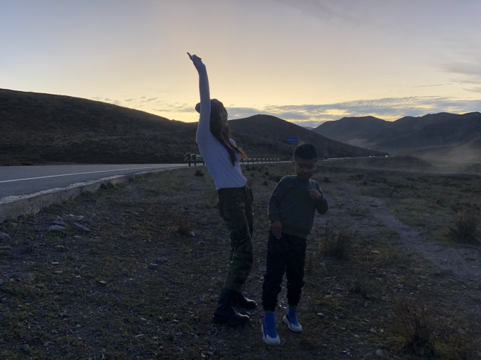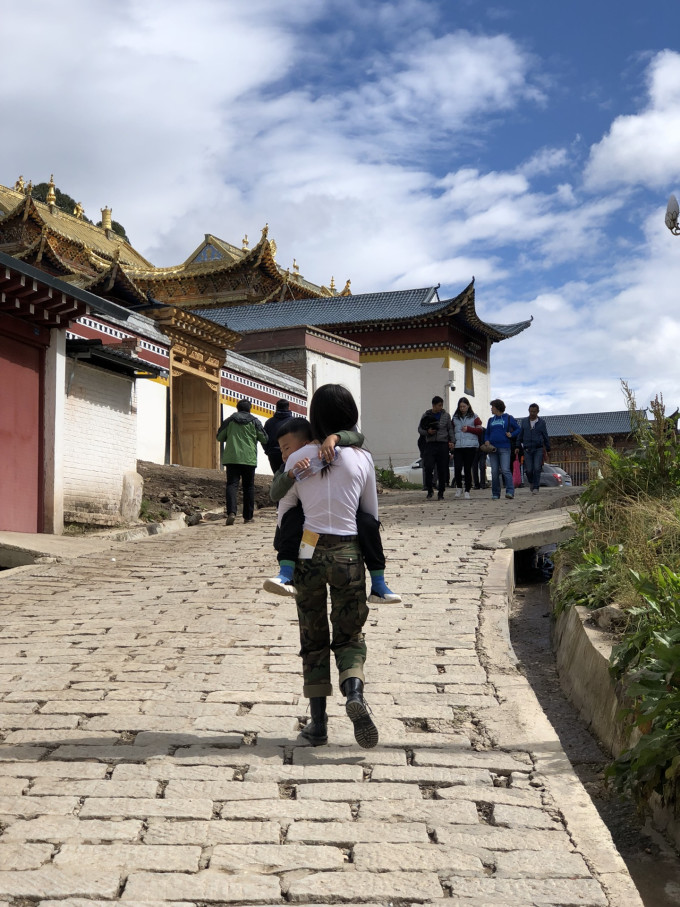 他们两个来之前有点感冒,所以稍微都有高原反应,大人喝了红景天,只有我精神百倍,不但能跑能跳能拍照,还能背儿子大跨步。