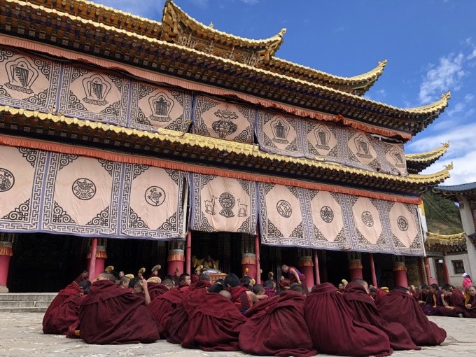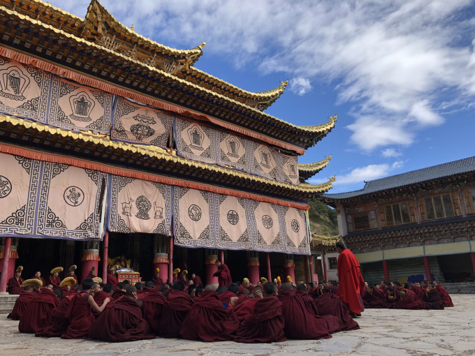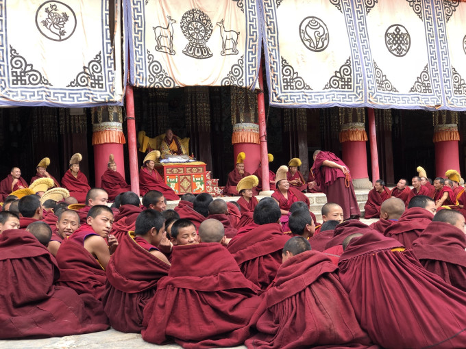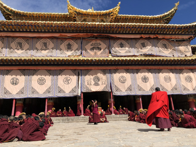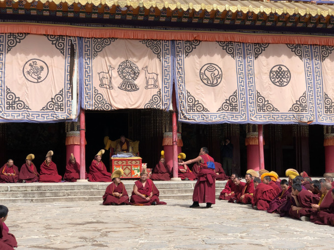 刚到朗木寺,就遇见了辩经,太幸运了!虽然听不懂,但看起来真的特别嗨,他们的手势拍起来非常有气势!