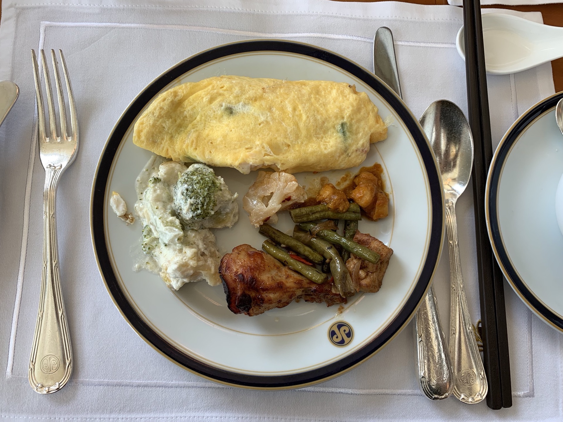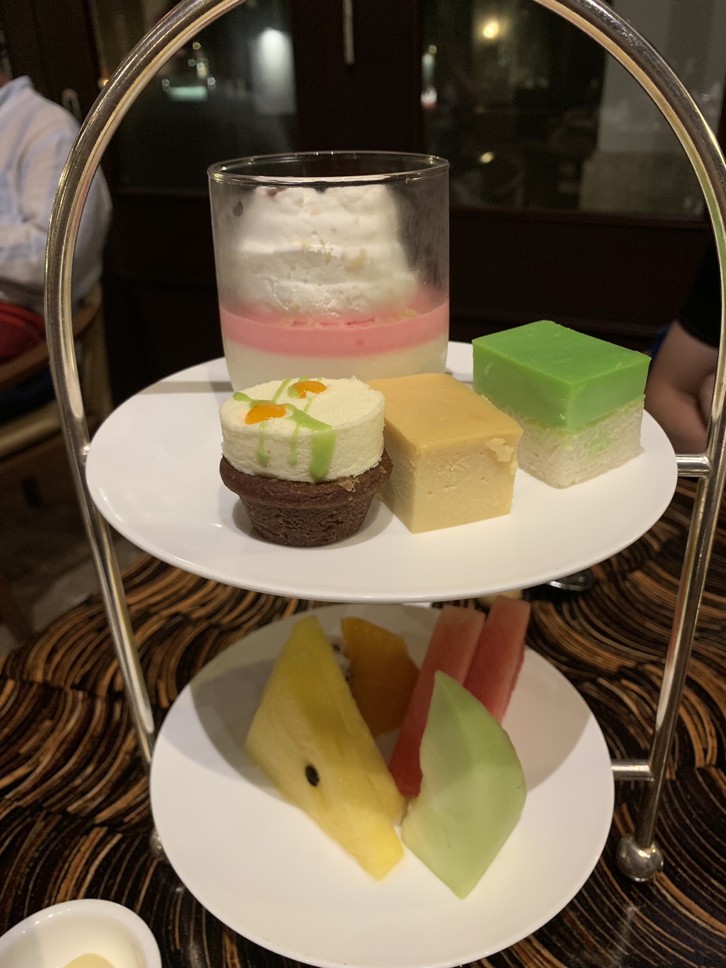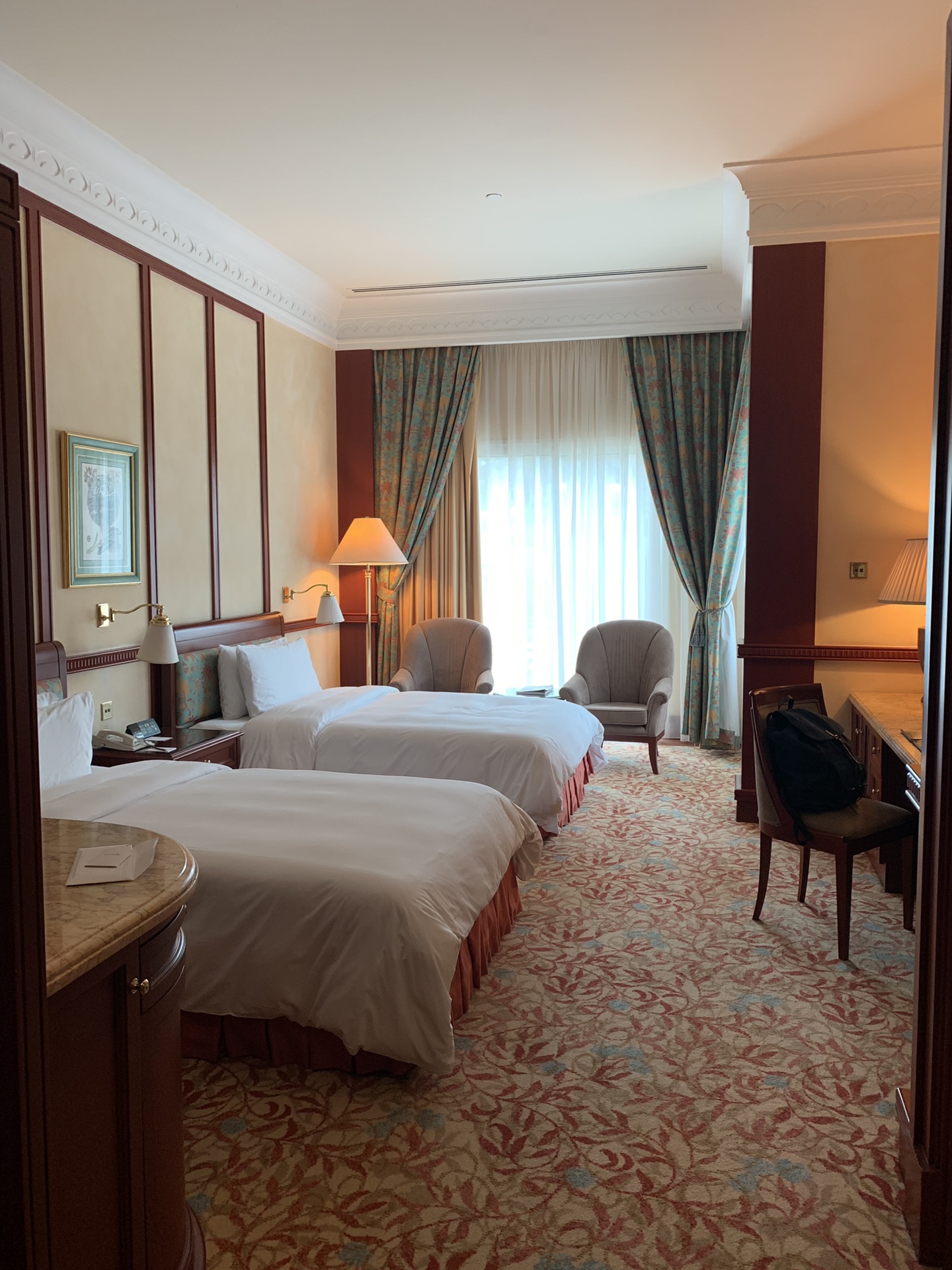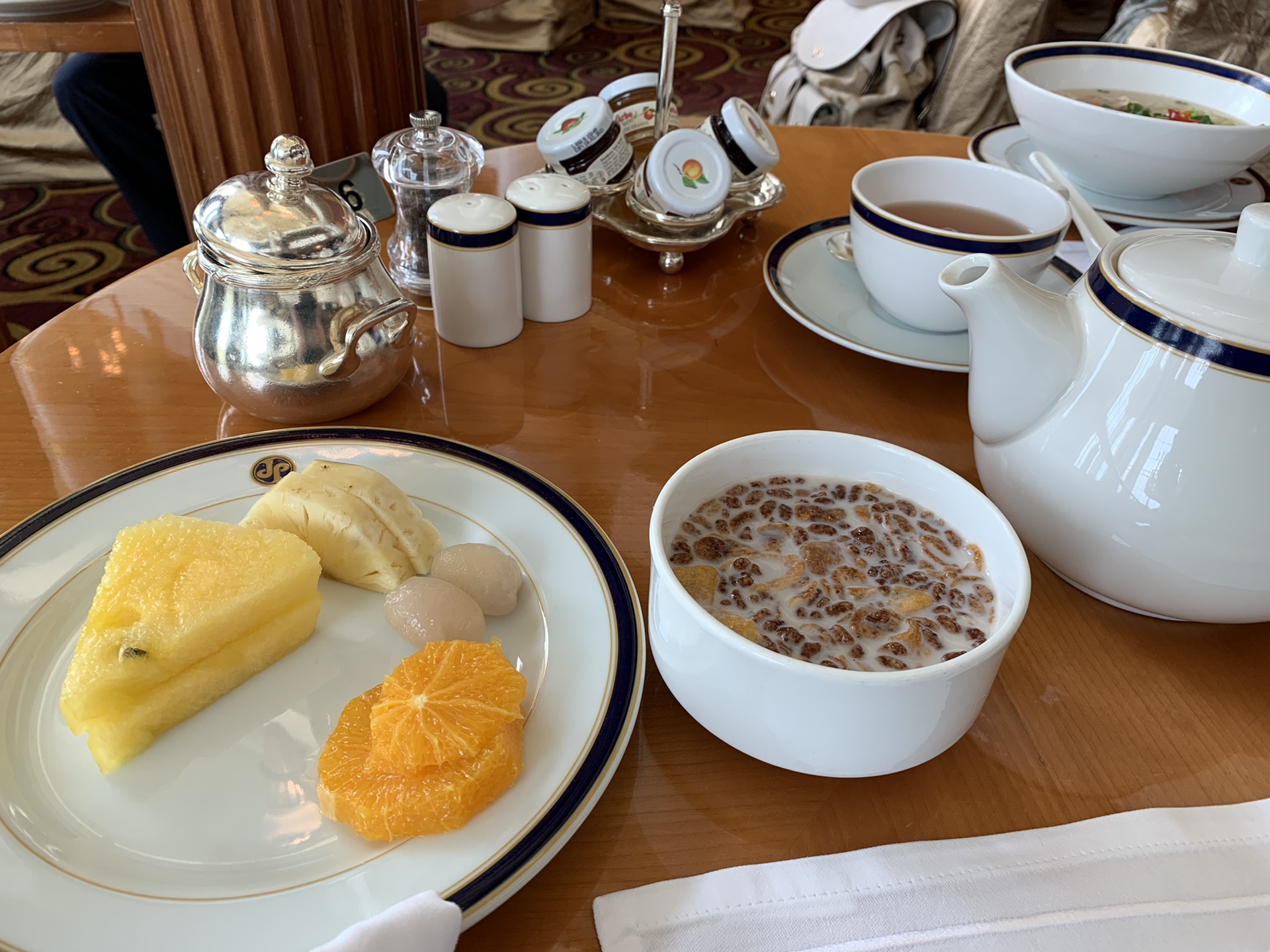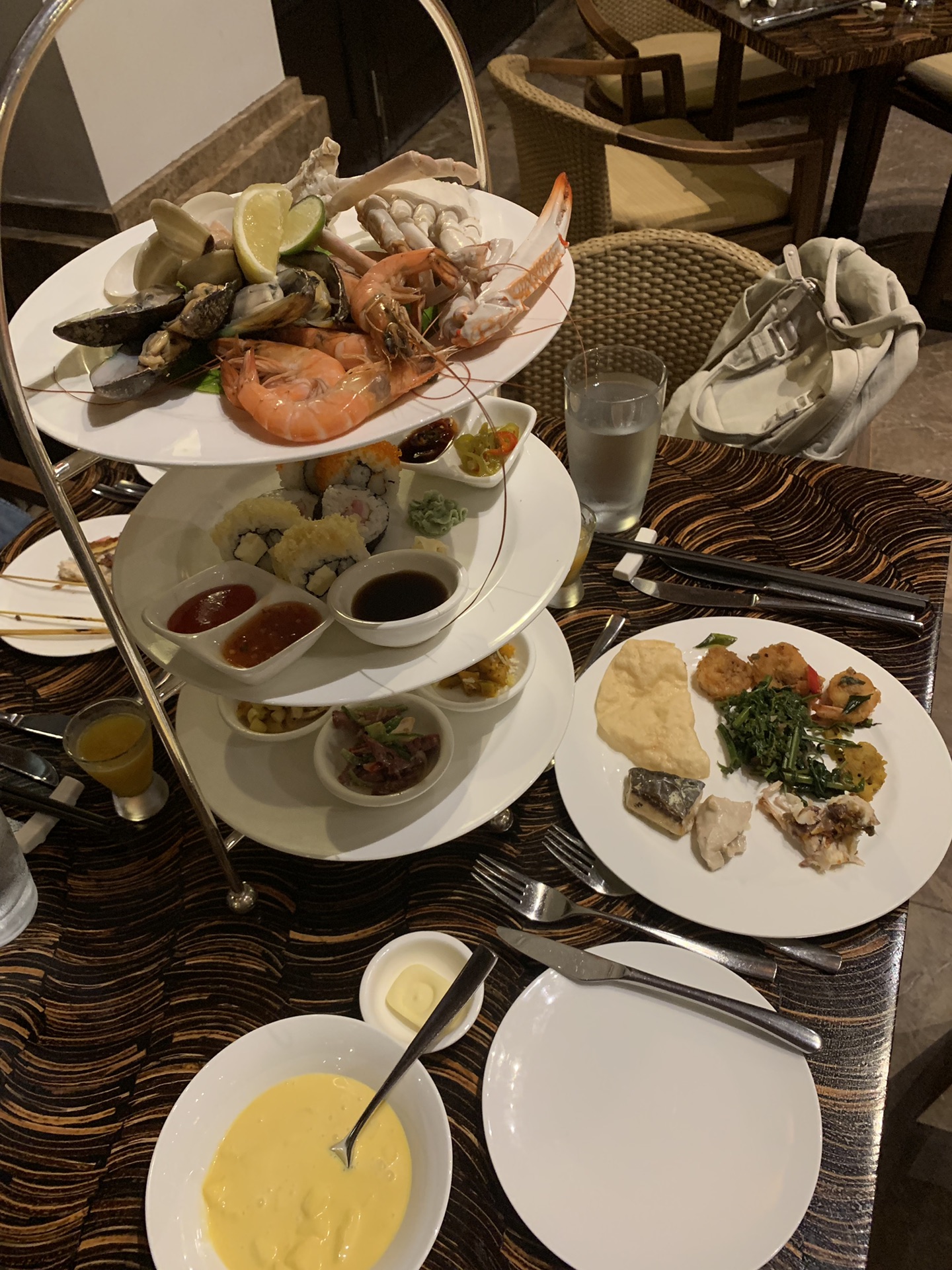 帝国酒店是原来四王爷的行宫 后来才改为酒店 人很少 地方很大 带娃的基本就不用出酒店门了..三个餐厅 游泳池 保龄球 高尔夫 spa...全都有..房间里的吃的东西 包括冰箱里的 都是免费 早餐在大堂那一栋的三楼 游泳池边有一个自助餐厅可以用餐 五十文币一个人 加上服务费大概人民币三百不到 还有一个中餐馆丽宫餐厅 也在酒店内 我们的晚餐选择在自助餐厅吃 品种一般般 味道还行 关键是后来一堆甜品冰淇淋 吃到撑