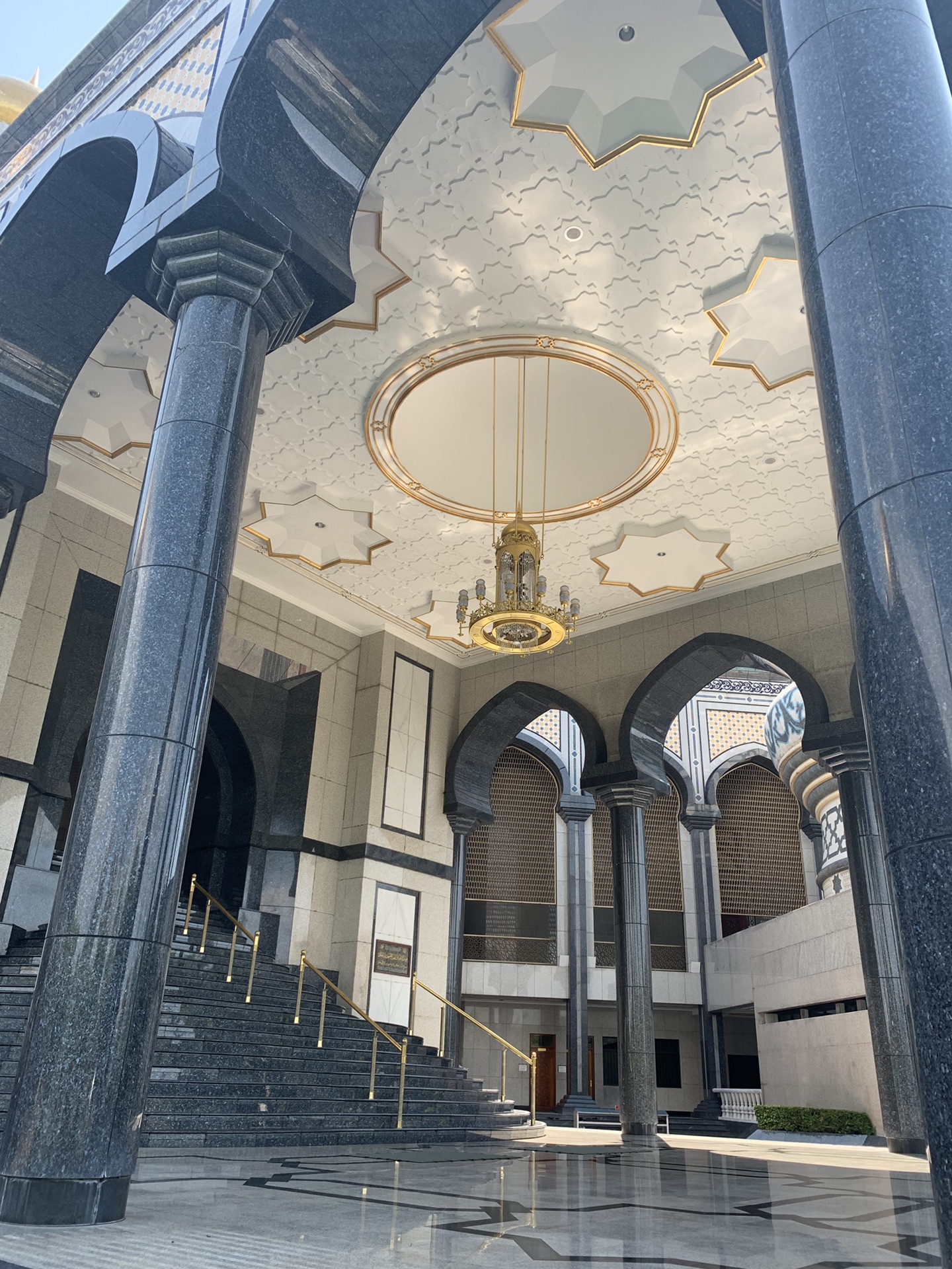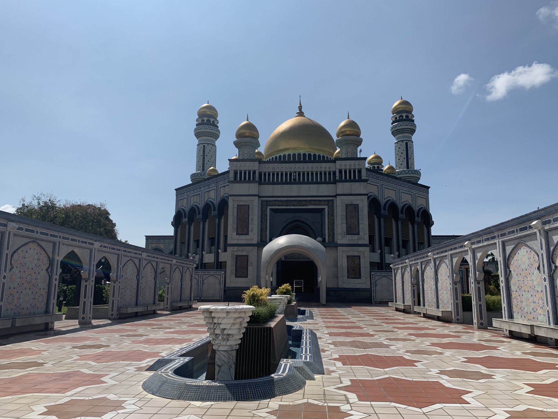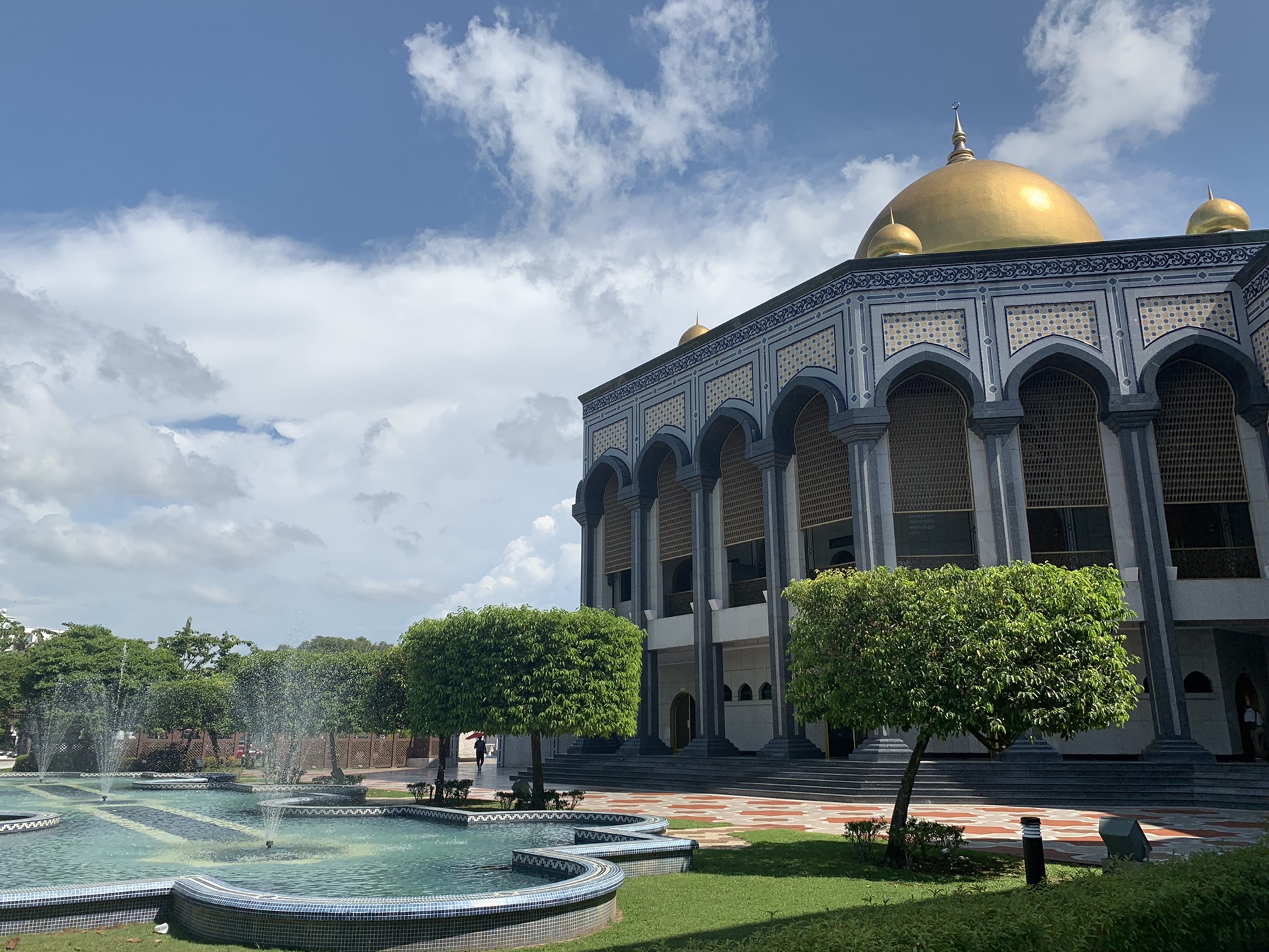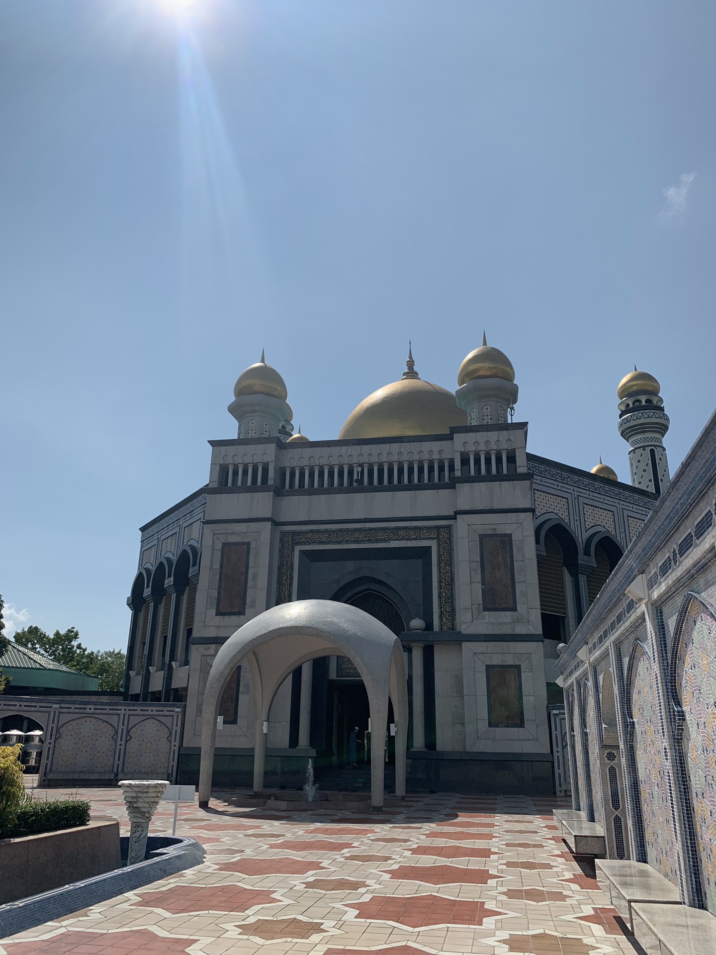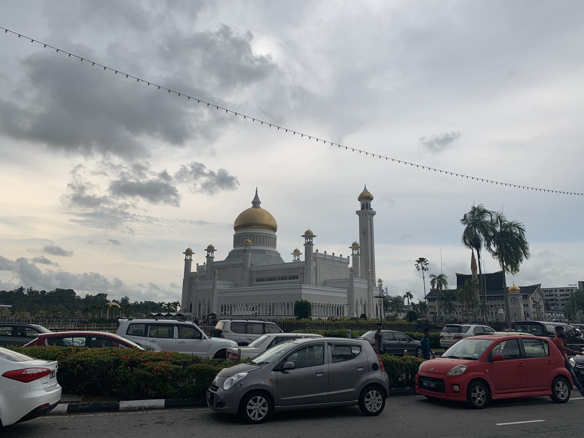 这几个地方离的也很近 里面也不需要逛很久 之后又去了另一个清真寺 奥马阿里清真寺 是属于文莱的标志性建筑 我们不可以进去参观的 只能在外面看看