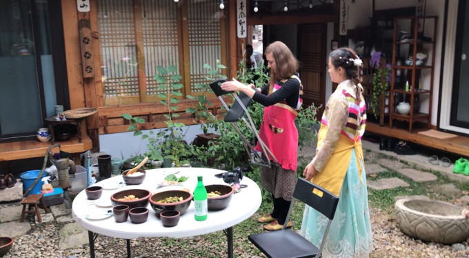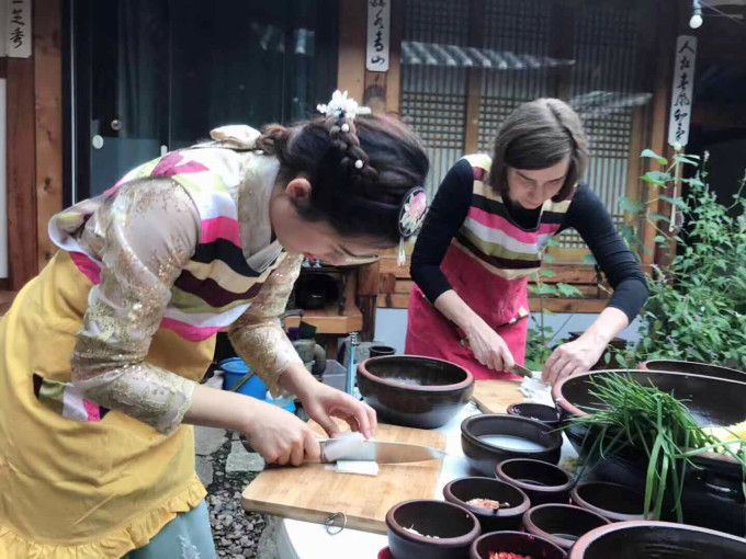 教授我们做泡菜的是一个叫Youngyeon的可爱女士,她在首尔中心的惠化洞经营着传统韩屋Eugene House,这是一栋有80年历史的房子, Eugene House的名字取自Youngyeon女儿的名字,房子的设计非常具有韩国古代建筑的感觉,以一个大院子为轴心,周围有几间卧室,厨房,洗手间。