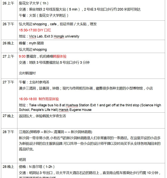 先上我们的行程单,包括逛街以及餐厅,其实玩的也基本是按照这个行程走的。