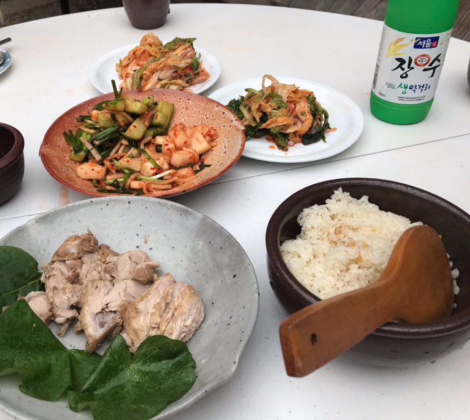 筷子夹起一块肉,一片泡菜加一点米饭,一口塞进嘴里咀嚼,在配上甘甜清冽的玛格丽酒,不要太幸福哦
