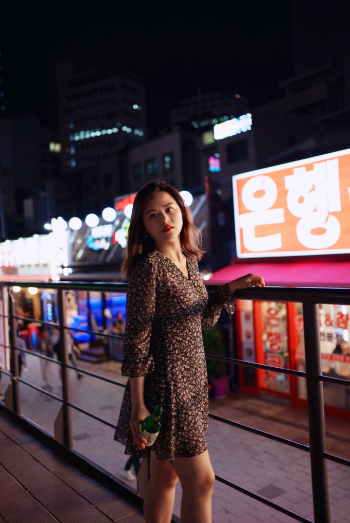 吃烤肉,喝烧酒,宿醉在异国的街头。