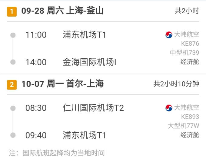 机票,大韩航空,9.28-10.7 2600元