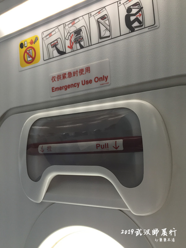 本来值机选座的时候是选应急出口后方的位置,谁知道临时换了架飞机,就坐到应急出口处了,位置挺宽敞,就是包必须得放在行李架上。