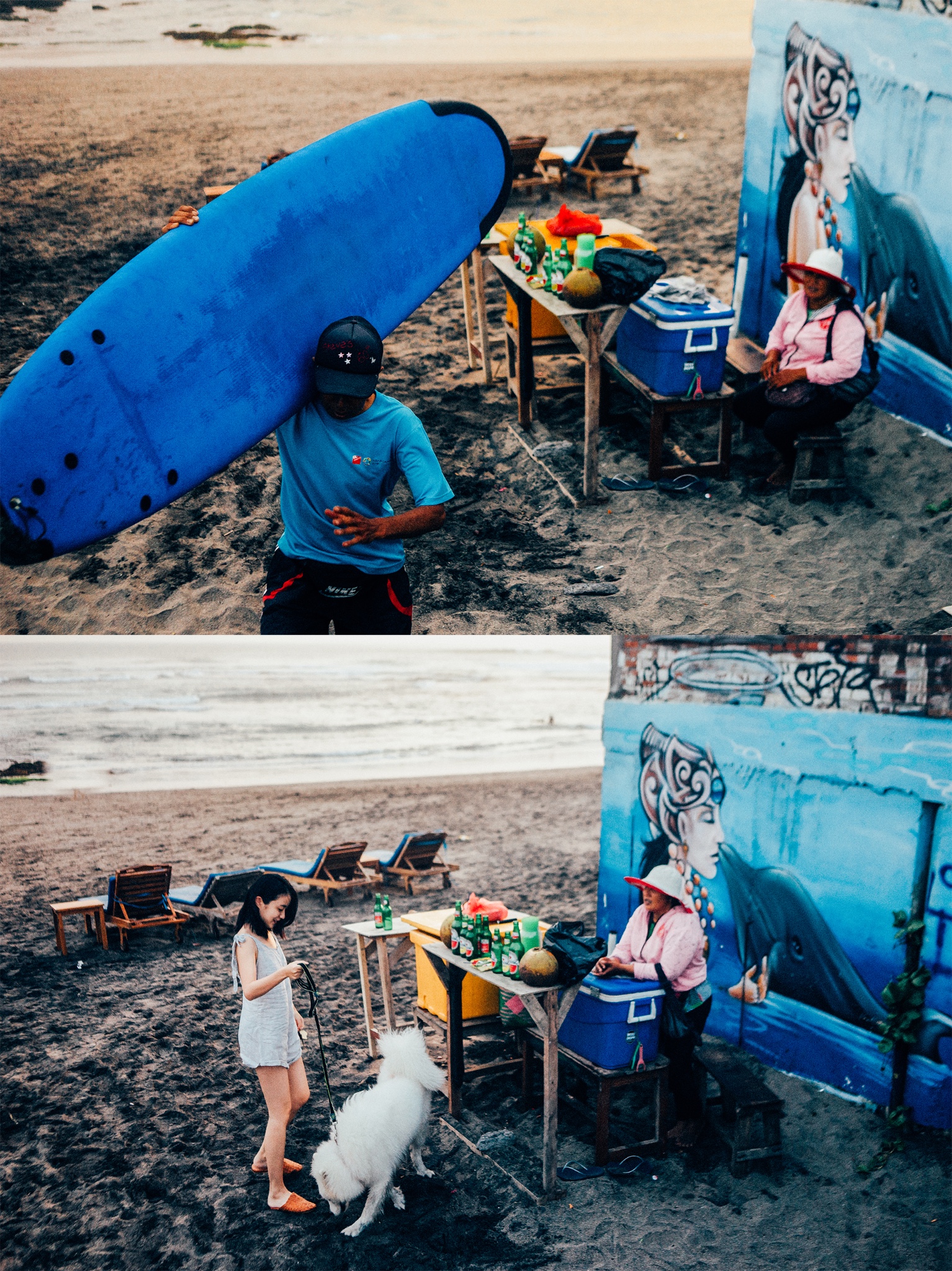 如果把蓝水白沙滩的蓝梦岛形容成庸俗,那canggu的灰水黑沙滩就是孤独。这里有着漂亮海滩没有的生活气息,更接地气,比较著名的三大块海滩分别时,batu bolong beach,echo beach,nelayan beach。