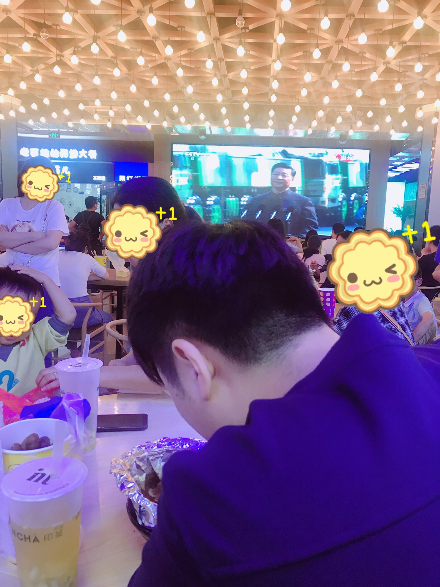 万达3楼有一个美食街,各种小吃,节假日人很多,有点嘈杂,但有空调有座位。