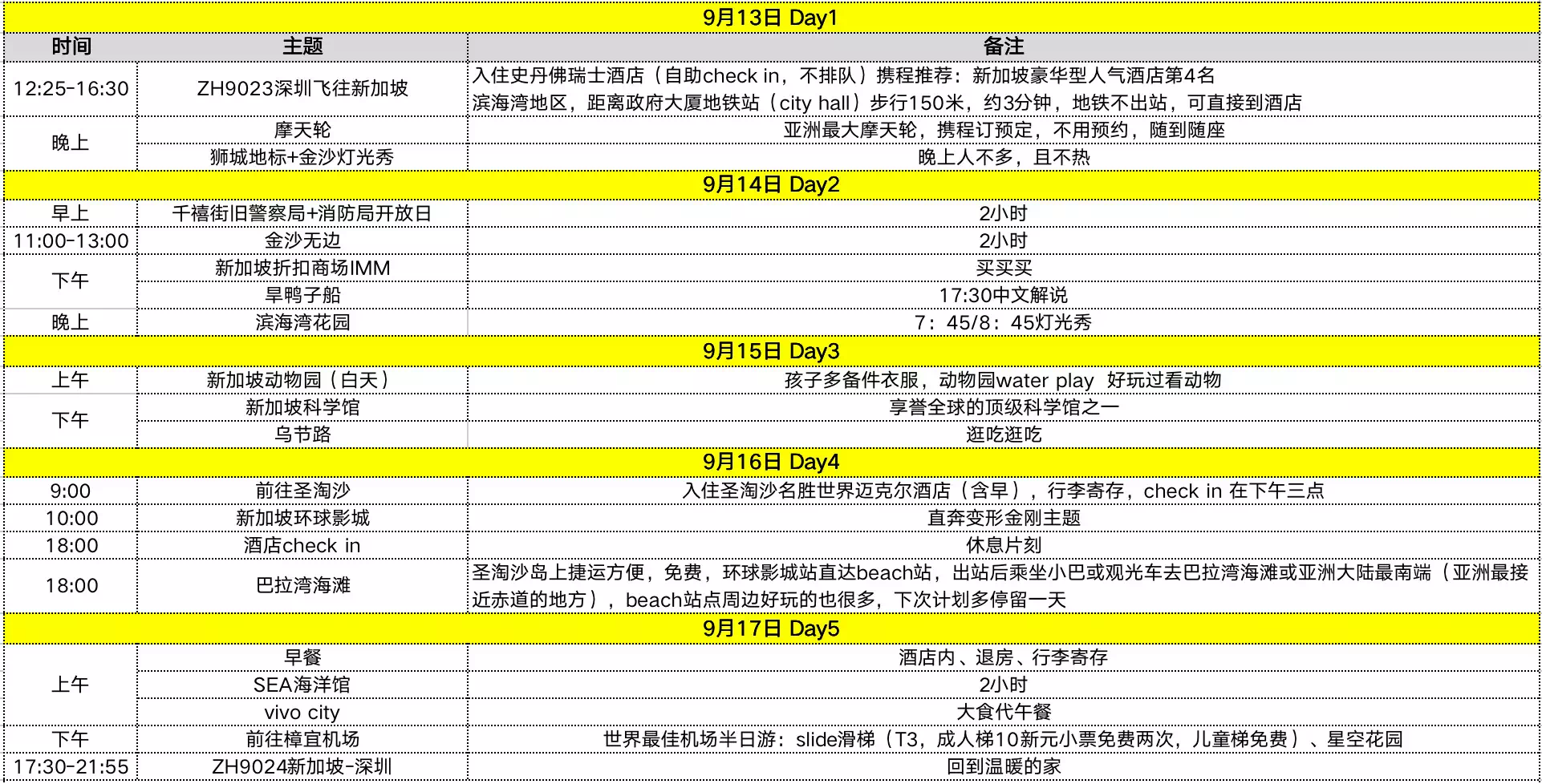 做过N份项目计划表,第一次为出行做计划,尤其珍贵。特别鸣谢新加坡“地接”刘导给出谋划策,她就是20年前那批骚动我内心的留学新加坡的同学之一
