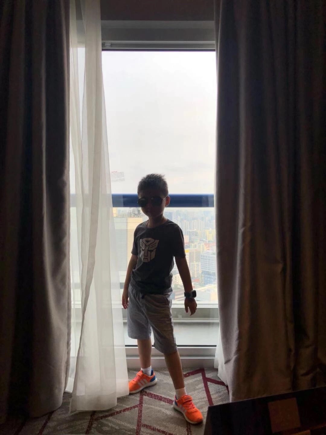 “哇!”小付同学第一次住这么高的楼层很兴奋,虽然我也是第一次住,但却因没有得到一间看金沙的湾景房而闷闷不乐,提前给酒店发邮件也不好使啊!