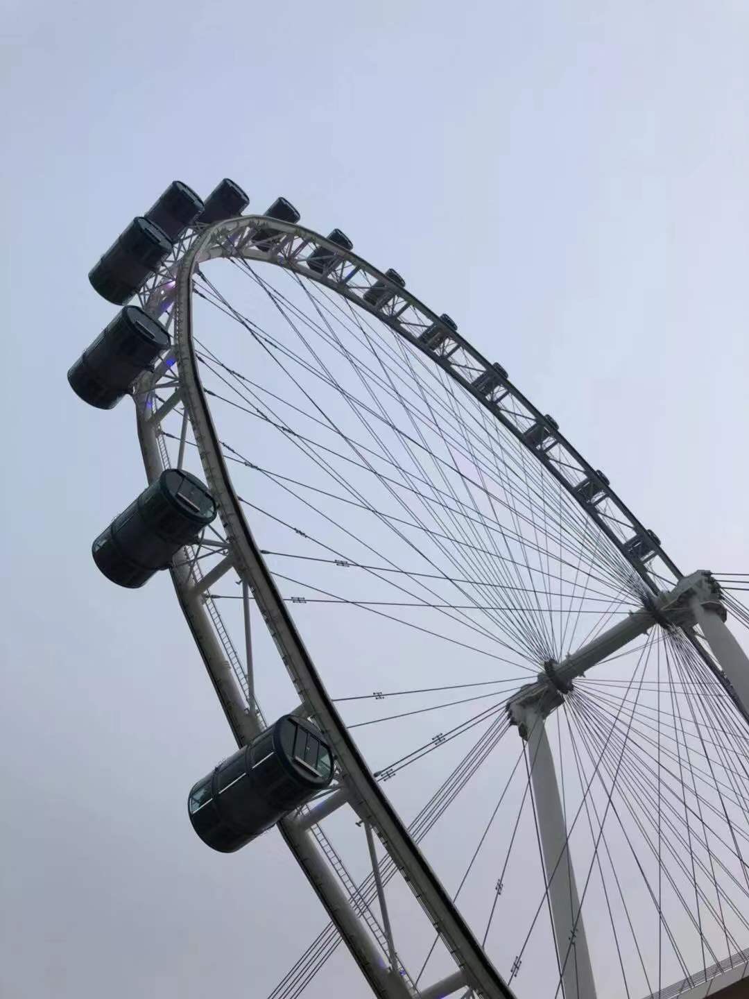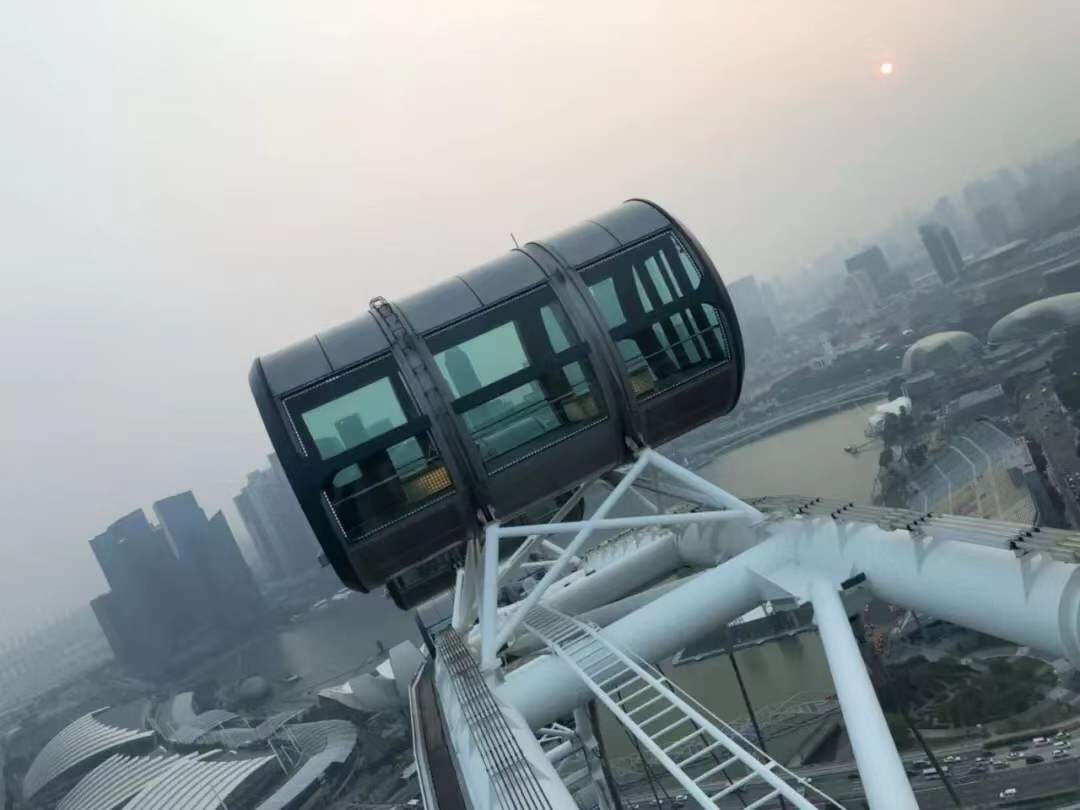 胆子小成这个鬼样子,怎么完成今天的第一个项目?新加坡摩天轮,高165米,相当于42层楼高,比房间楼层低11个档,Why not?