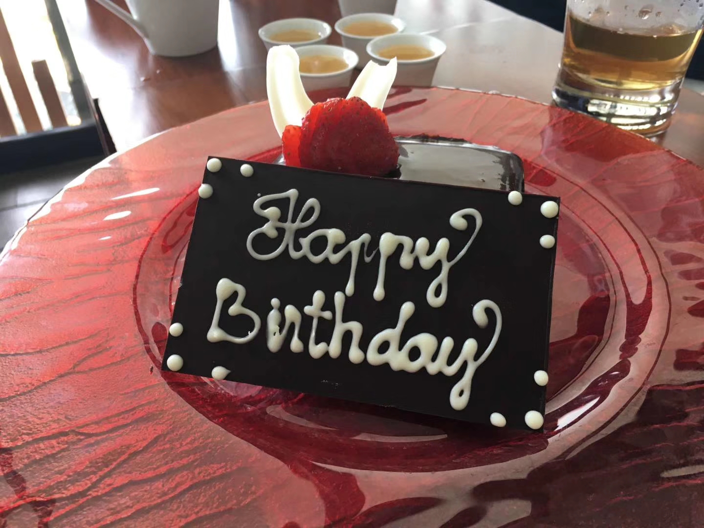 今天早餐刚结束,就被一群热情的人儿邀请,去吃了我的生日蛋糕,刚吃完迦南岛上的海鲜大餐没一个钟,这会儿又被带来喝下午茶,觉得很有压腻啦!