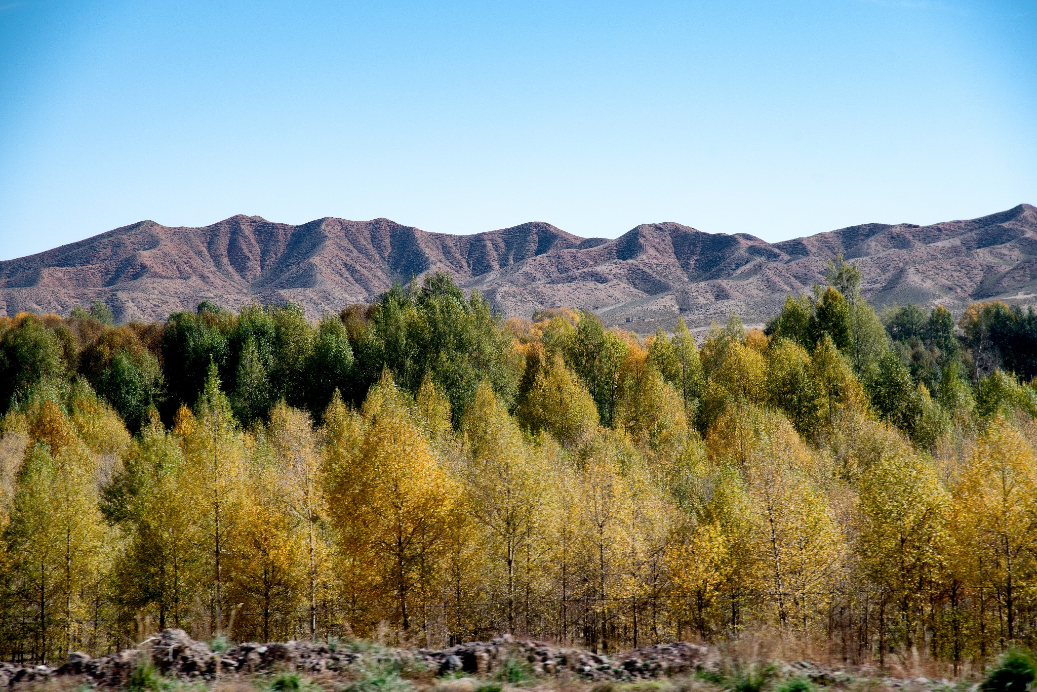 斯生于东南,小时候看到的周边景象是一座山挨着另一座山。去年在广西看到了另一番景象,那儿平地上兀地立起一座座独立的小山丘,婉约而清秀。现在又在河西走廊首次见到如屏障般连绵千里而不绝的祁连山,感到颇为新奇,请允许我大惊小怪一番