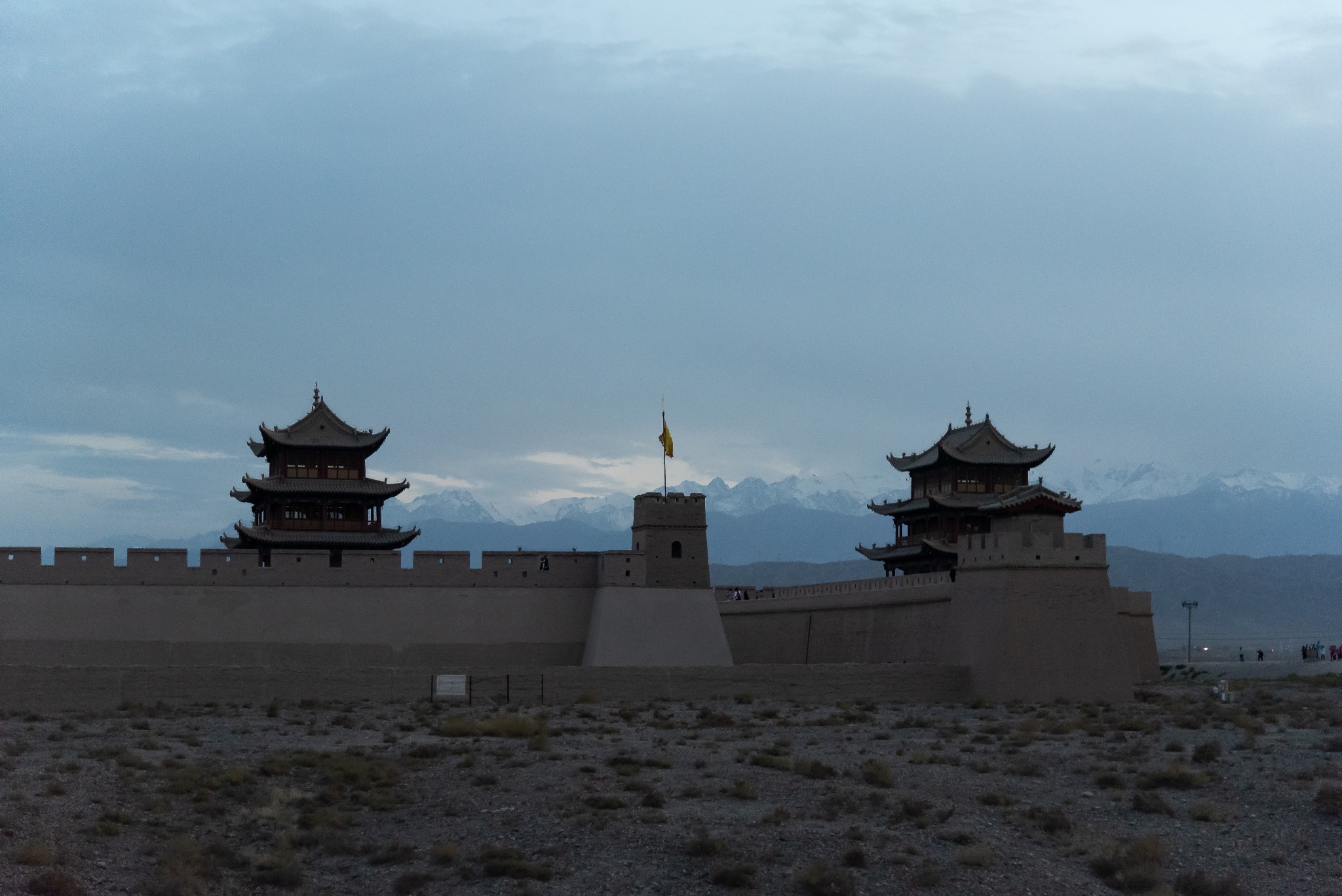 今人不见古时月,今月曾经照古人。当我爬上关城脑海里浮现出来的是天寒地冻之夜年轻士兵在此戍卫边塞的场景,也在想脚下的砖石是否曾被血染过?当我走出嘉峪关时夜幕开始降临,回望关城,我看到一支队伍正从关门走出,队伍中抬着一口棺材。我知道,那是领头将帅,一位六旬老者给自己准备的。27年前有一位前辈赠予他一张X*~J地图,如今他要出征的战场就在那里。嘉峪关即将聆听到他和战士们从前方传来的壮阔战歌!他就是在清朝晚期收复X*~J的左宗棠,而那位前辈是林则徐。