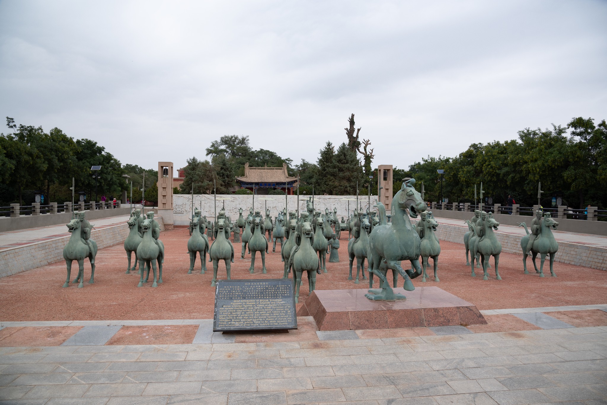 在武威市内有一座汉代的古墓,古墓为岁月所遗弃,后人不知其所在而在其上方建了座供奉雷神的庙台,故今人称此处为雷台汉墓。此处出土过一个铜马阵,领头的一匹马如闪电般凌空飞驰,有那么一瞬间它感觉脚下踩到了一个异物,它低侧着头想看看踩到的是个什么东西。在同一个瞬间有一只燕子抬侧着头想看看是什么东西踩到了自己。没错,我描述的就是马踏飞燕,这件文物就出土于雷台汉墓。目前真品收藏于兰州博物馆。