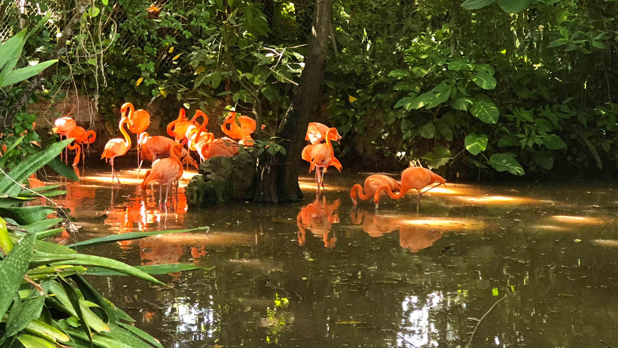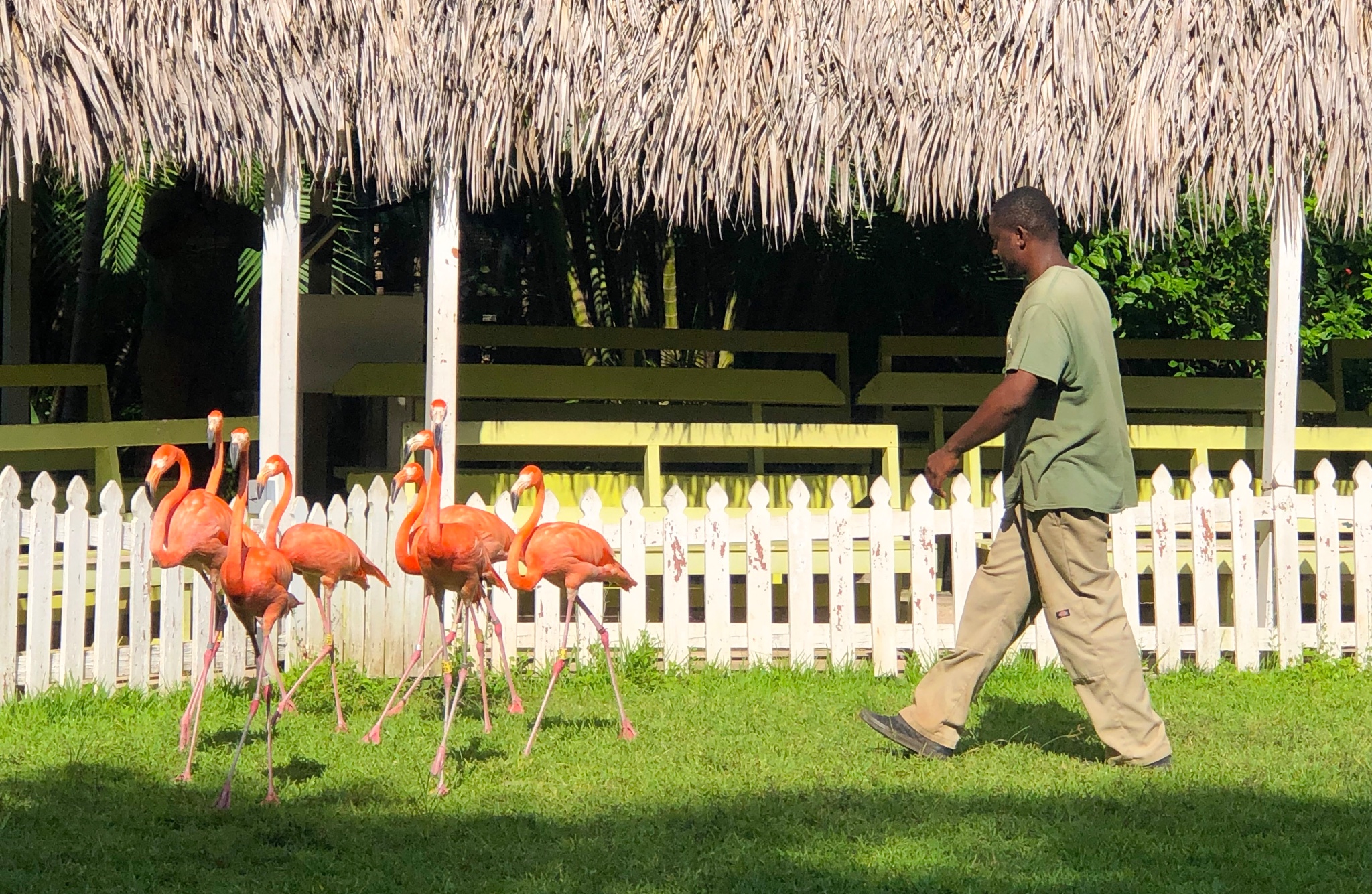 当然重头戏是火烈鸟了。下午四点有show。内容是一个工作人员赶鸭子一样赶着几只火烈鸟在场子了转悠几圈,找观众互动几下,前后大概不到十分钟,非常巴哈马风格。