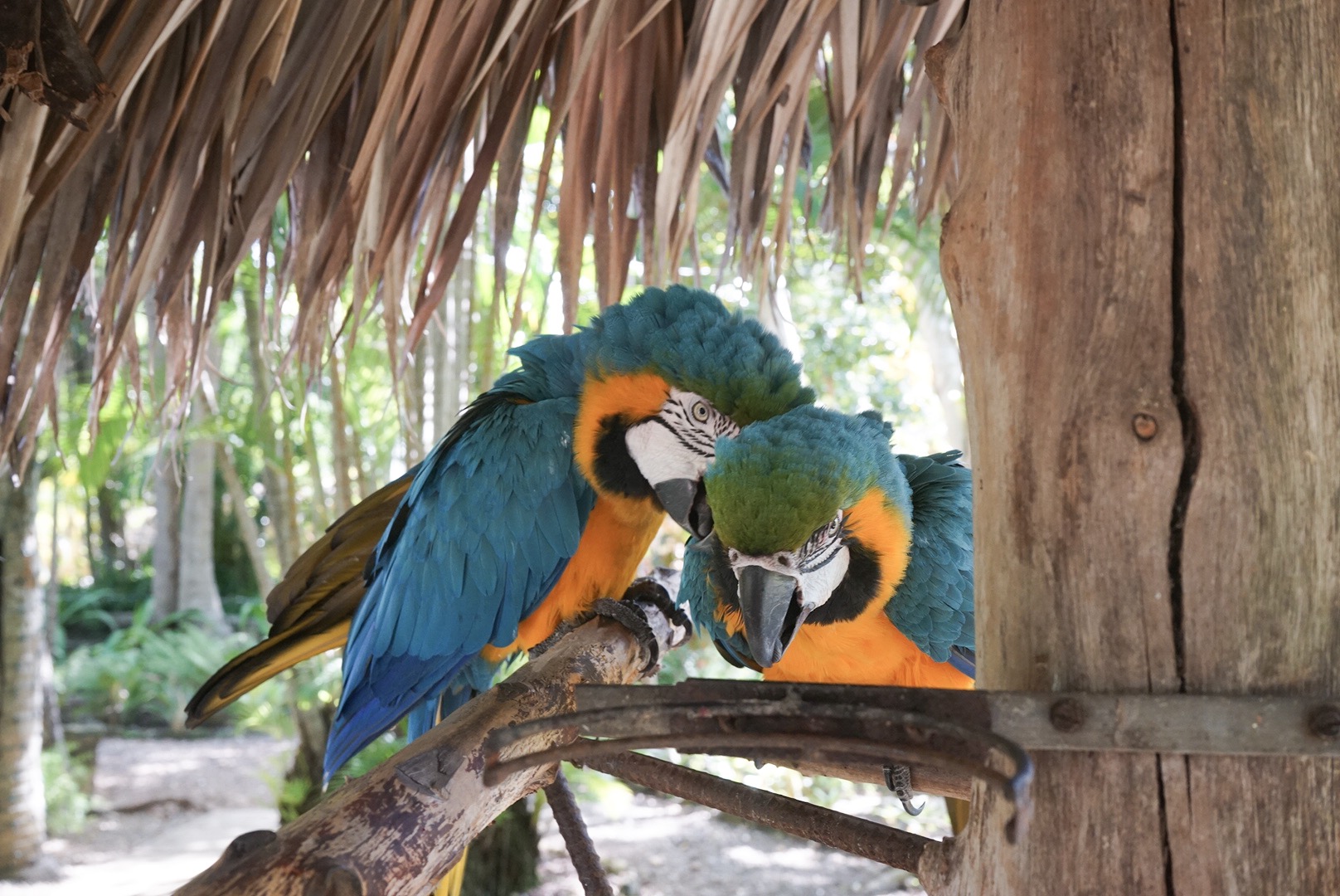 刚进园子就见俩只正在激烈吵架的鹦鹉。不过见我们围观,他俩就停了争吵,然后不知为何还秀了把恩爱。