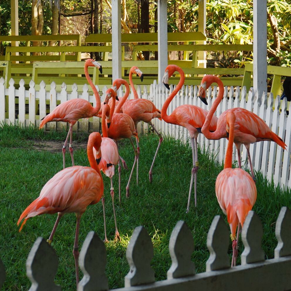 往downtown方向,经过Saunders beach,这里算是比较集中的饮食基地,汇聚了KFC, PizzaHut,shack之类的快餐。再行十来分钟,就能看见Ardastra Gardens, Zoo and Conservation Centre的路边标牌。这里的头牌是火烈鸟哦!