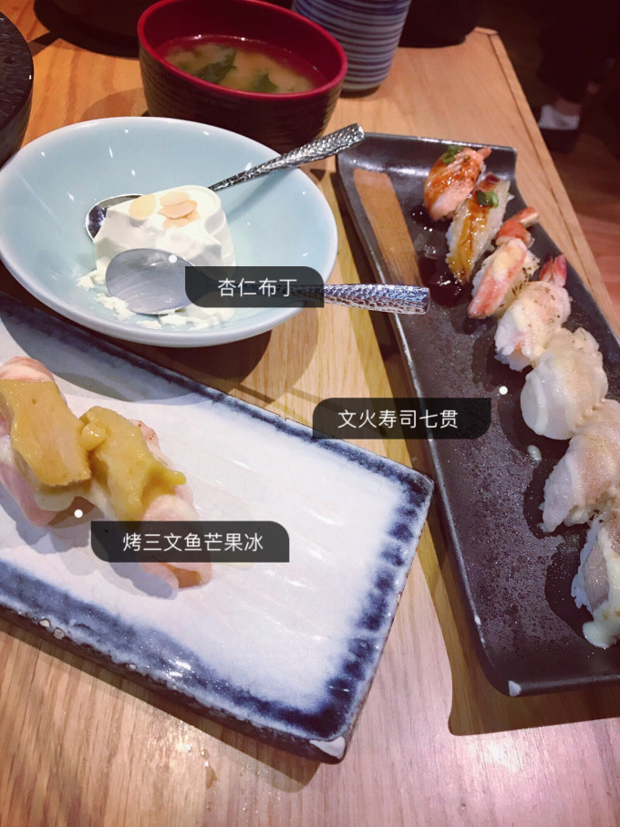文火寿司七贯48元:选择困难症的福音,可以吃到各种各样的寿司,适合不愿意吃刺身的同学。不失水准。推推荐!