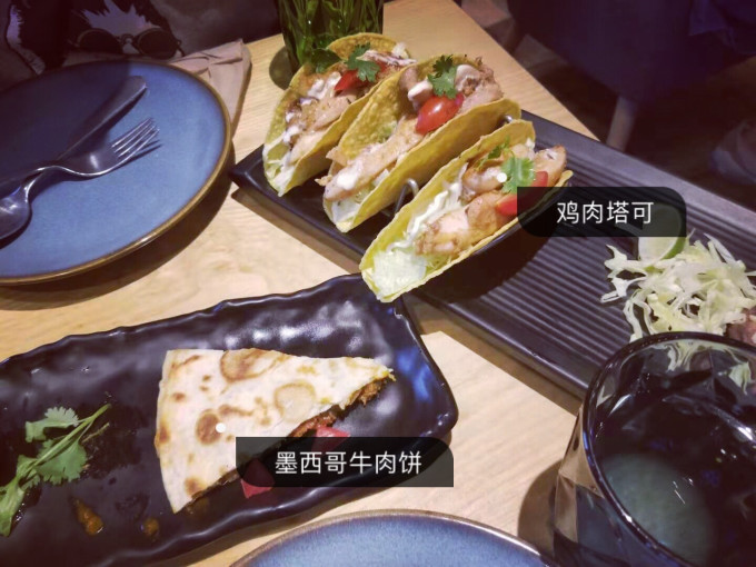 墨西哥牛肉饼30元:饼皮薄薄的,馅料很丰富,可以蘸着沙拉酱或者番茄碎酱,一口下去很满足。