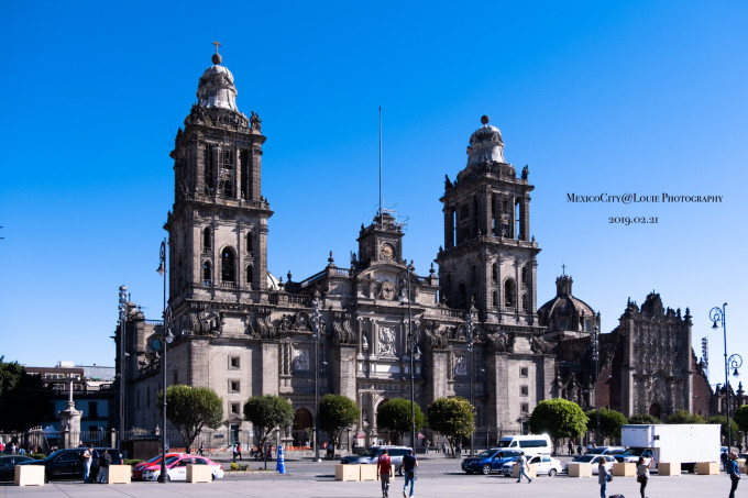 由于时差的缘故,前一天晚上到达墨西哥城的时候就回去休息了。第二天起来一个大早,前往我们的第一个景点-位于宪法广场的墨西哥城主教堂,它是墨西哥城的标志性建筑,也是墨西哥最大的教堂。长109米,宽59米,高65米。是一座不朽的宏伟大型建筑。这座教堂建于1573年,1823年之后才正式完工,历时250年。我们去的时候,也有许多人在里面祷告,所以大概有那么一半的教堂是不允许游客进去参观的。