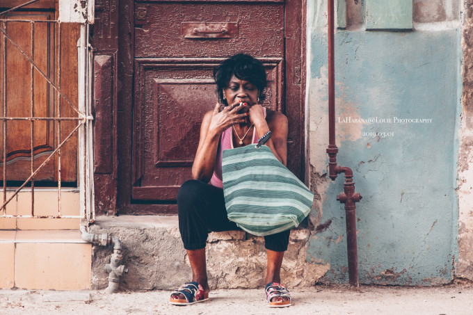 哈瓦那街头吸烟妇女