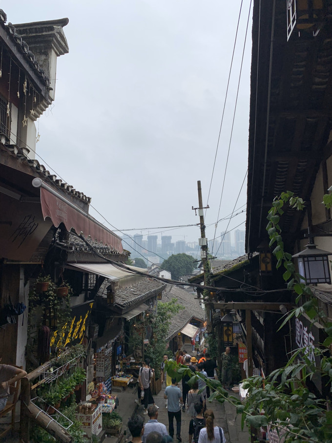 从酒店出来我们坐地铁坐了大概一个多小时到达磁器口,九月份上班日都有好多人,这种带有城市文化底蕴的地方,基本上每个城市各有千秋,于我的印象来说就是路很窄、人很多、天气说下就下、很多台阶,如果真的很累的话真的不想走回头路,首先人挤人真的不好走,而且雨一下就很急,真的不知道该往哪里躲。磁器口有很多美食小吃,还有一些奇特的小店卖的东西比较有意思,不过景区东西比较贵,基本上就是择优而选,吃一些没吃过的就好了,在这里可以看到现场制作的牛油火锅,也很实惠。逛了半路就遇到下雨真的很不爽,足足等雨停大概就等了半个小时,由于时间关系,果断放弃了磁器口的行程,接着打车去了洪崖洞。