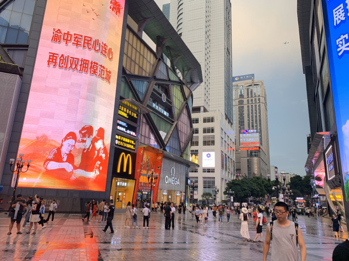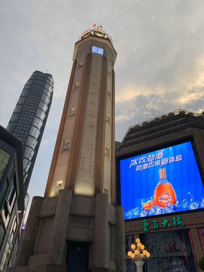 说好的去洪崖洞,实在抵挡不了重庆司机的热情,眼看就到饭点了,本来和老公想着要去洪崖洞吃火锅,欣赏美景,而且之前真的做了好多功课想着去吃特色火锅,没想到司机主动要给我们介绍一家当地既好吃又实惠的火锅,想想盛情难却只好去了,吃完以后感觉除了和平时吃的火锅确实有点差别外,其余环境、口味也就一般般。饭后去了解放碑,真的是一顿好找,崎岖山路,爬上来爬下去,天气又闷热,真的很难受,感觉比香港地形还复杂。解放碑附近有好吃街,太大了,累到不想走,买了点特产,赶紧去了下一站。