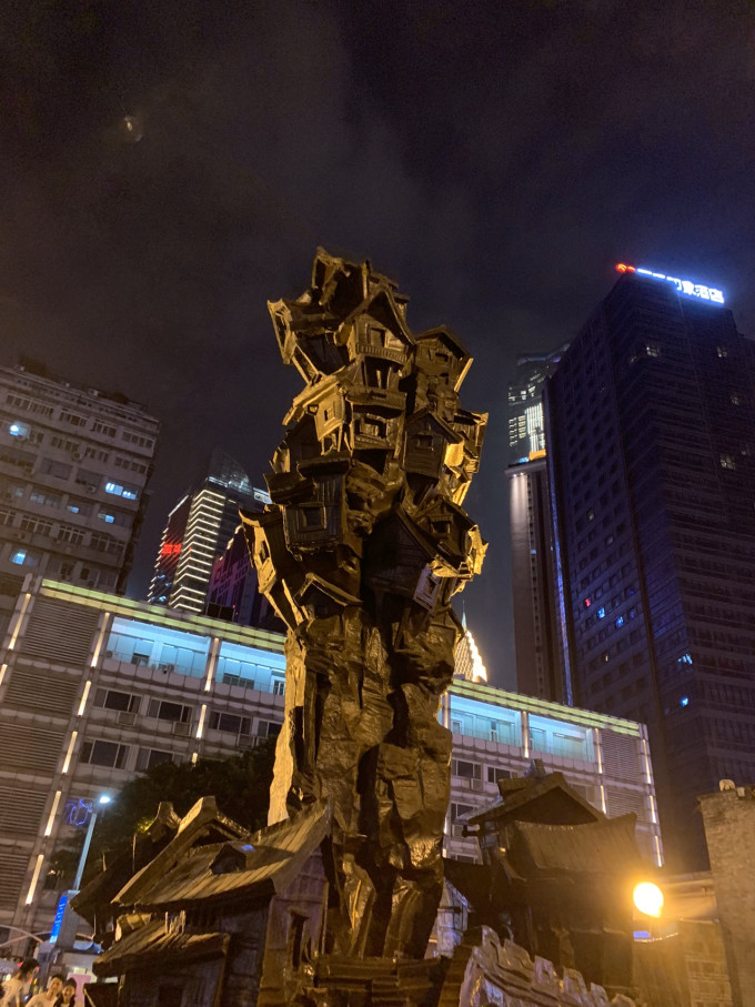 解放碑附近就是洪崖洞,好大一片区域,很多人都在吆喝叫卖,还有好多人在排队,第一次听说您现在所在的位置是11楼,您要下去才能吃到好吃的。我的个鬼,我明明在平地呀,我都出现幻觉了,要去1楼得去排队或者花钱走快速通道,所谓的快速通道也就是当地人知道的抄小路,根本没什么秘诀,就瞎骗骗外地人,我也是被骗的其中一员。洪崖洞看着没有想象中的壮观,太商业花了,而且很多门店都关闭,为什么非要晚上去呢,吹着江风,欣赏着夜景,看着人山人海真的舒服。