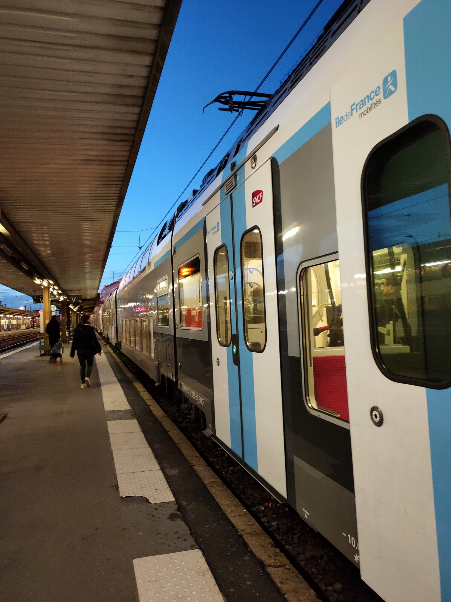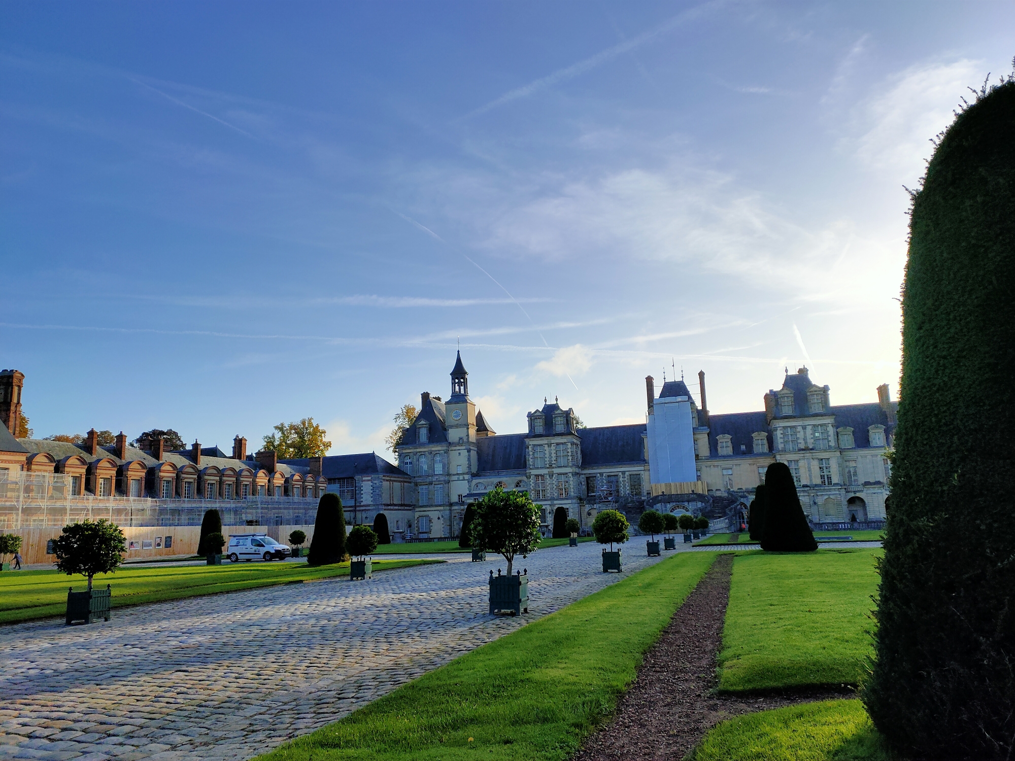 枫丹白露,一个有着诗意名字的地方。清晨7.47分,天空还是深蓝色的,我们从巴黎里昂火车站启程,坐上蒙特涅方向的区域火车,三站下车到对面坐1路公交车到枫丹白露。巴黎交通卡通用,站与站之间无缝连接,极其方便。
