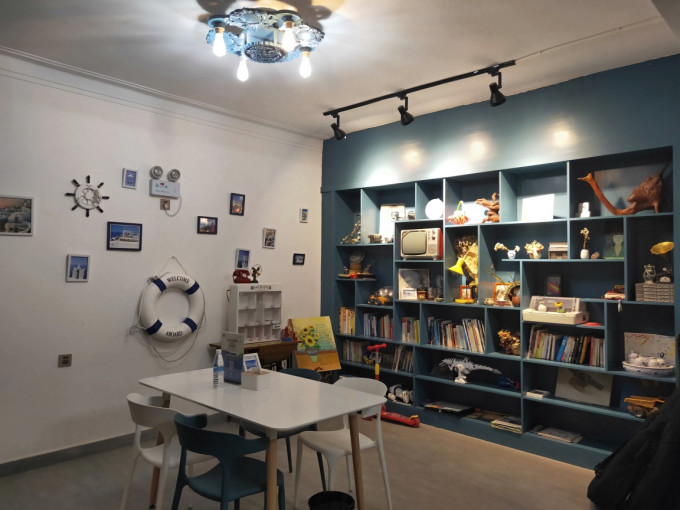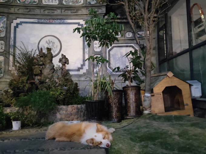 闲暇的时间一般我会在书吧看看书或者上楼顶吹吹风,其实我有点怕狗,但是看到布鲁斯这么温顺也就没那么害怕。