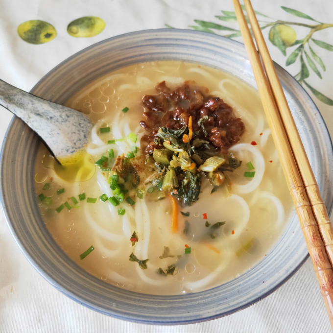 早餐主要提供米线面食,在厨房里跟着姐姐一起忙活,充实的时间就是过得快,空闲下来的时候已经接近11点了。姐姐也给我做了早餐,是大理的特色美食饵丝面,还贴心地给我留了一个鸡蛋~