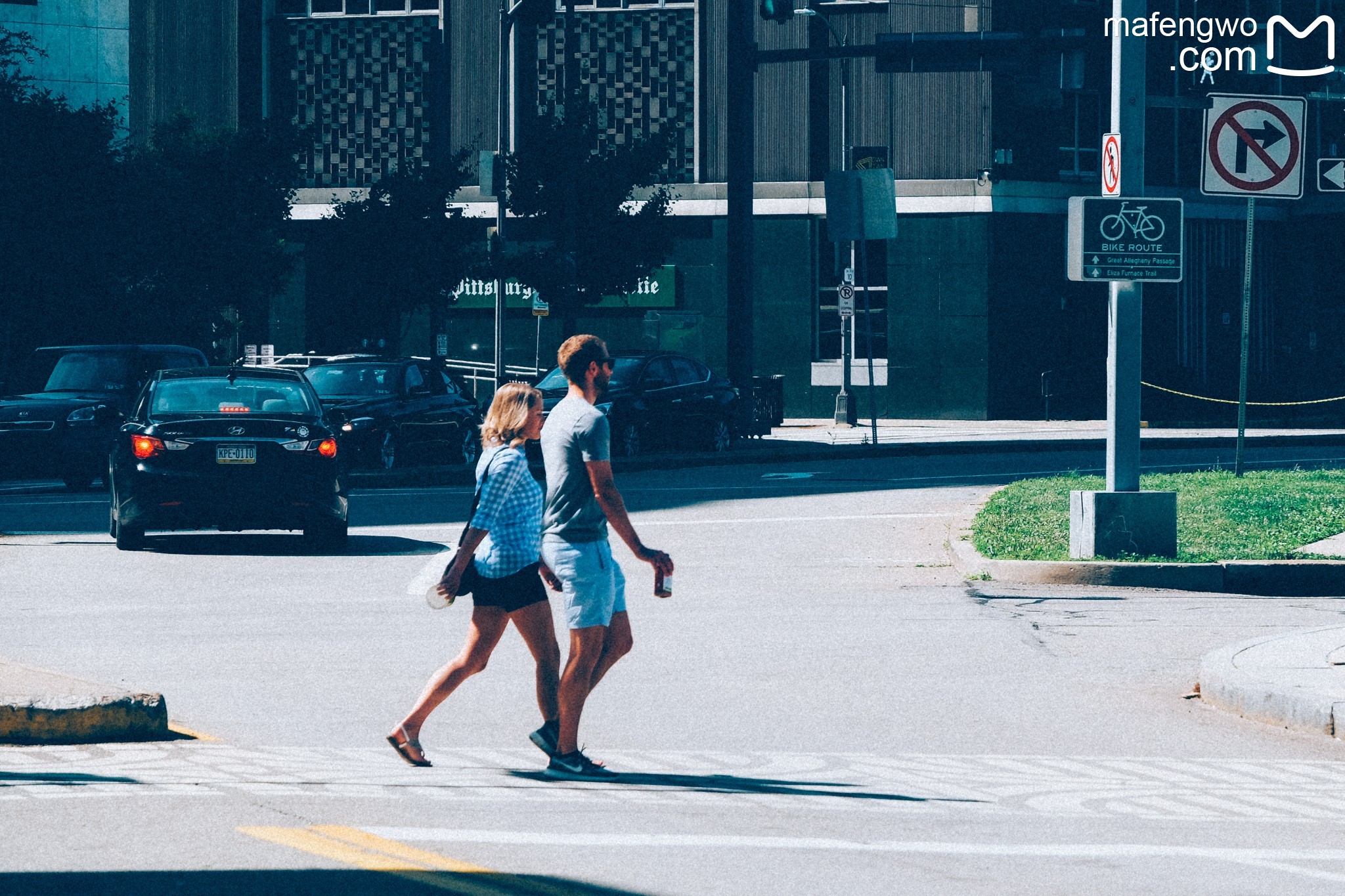 匹兹堡和其他大城市一样,交通依然拥堵,不过匹兹堡的车辆密度没有挡住传统。在这里的十字路口给行人的同行方向不是单一的,而是当允许行人走的时候是将所有路口的行车灯都变成红色,这时,被交通灯所包围的中间区域就变成了步行街,人们可以按自己的意愿选择各个方向行走,包括对角使用十字路口。比起国内的十字路口行人没有规矩,需用罚款治理的状况,这里真是方便多了。