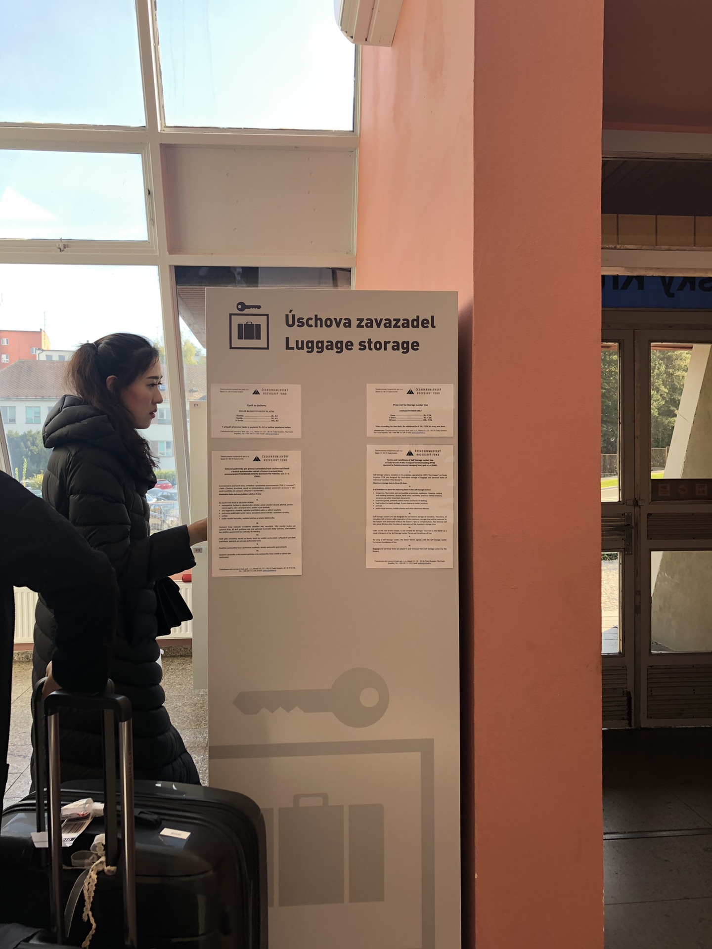 特别说明一下如果跟我们一样,不回布拉格也不在CK小镇住宿的话,总站旁边的服务中心有电子行李寄存的箱子,是需要自动操作的,操作不难,但是需要银行卡支付,有磁芯的信用卡会比较好识别,我们用的磁条卡反复刷了很多次也没有成功,最后还是好心的小姐姐帮我们刷的卡。寄存5小时50克朗,价格感人。箱子有限,最好早一点到。