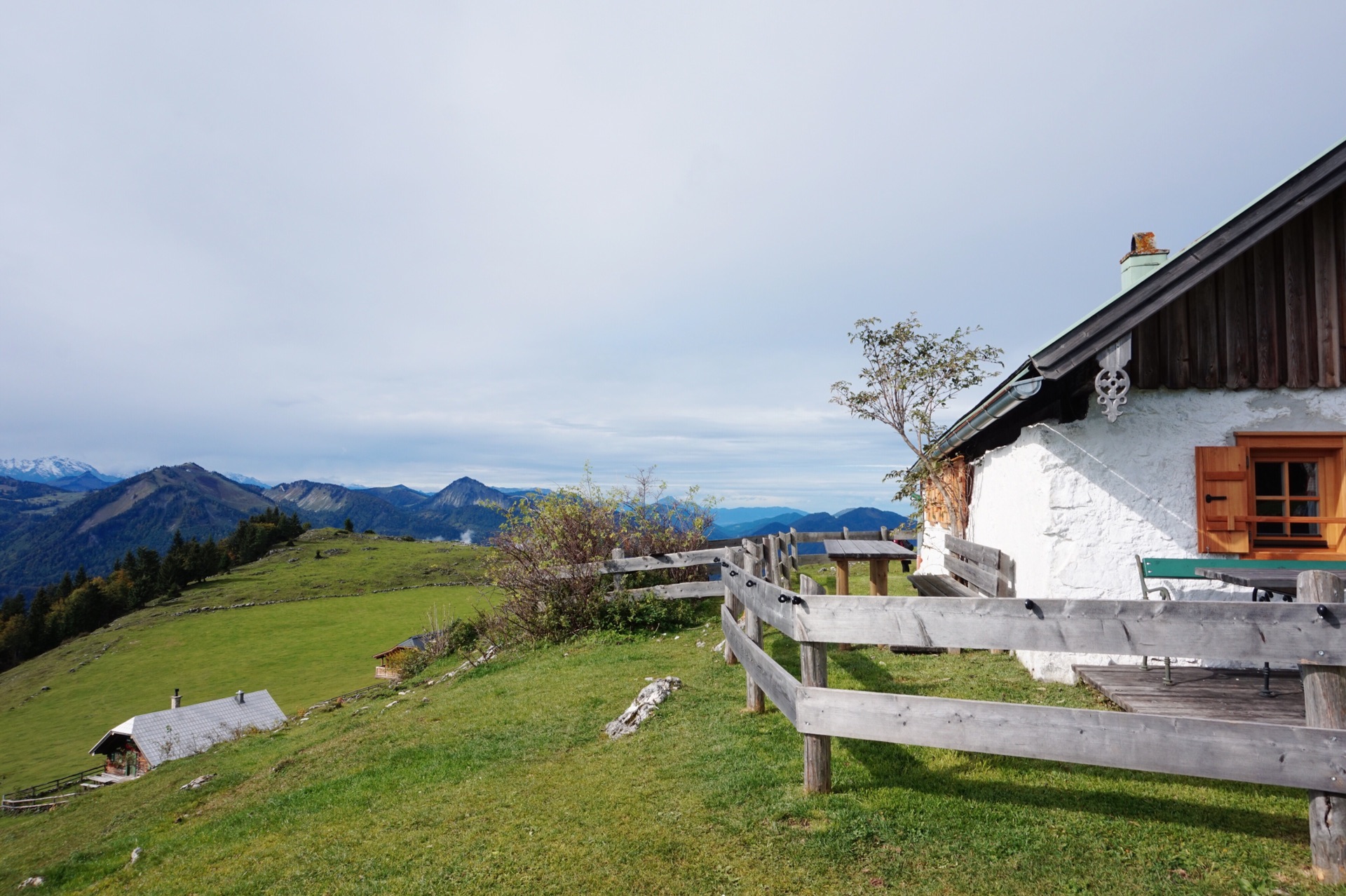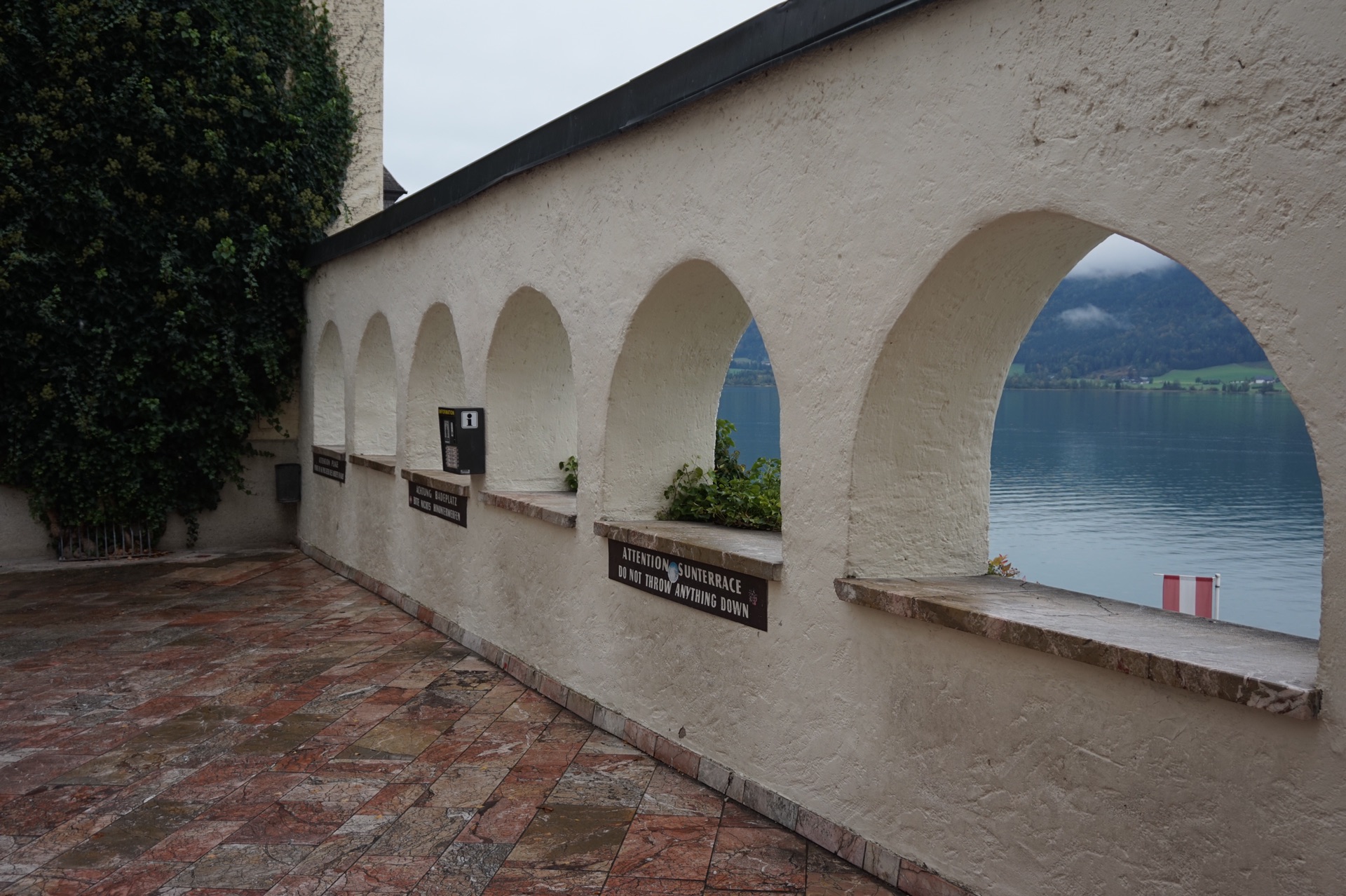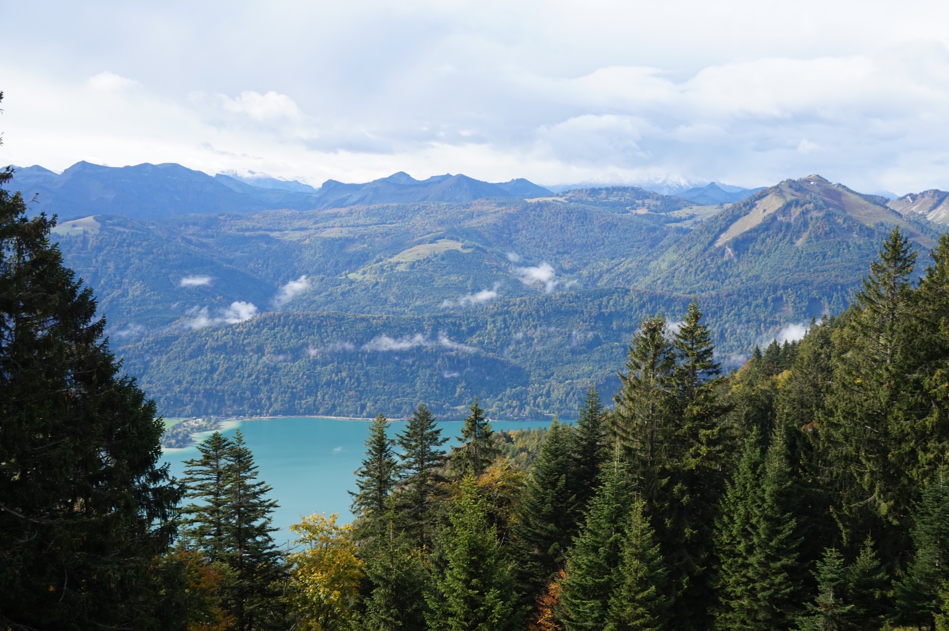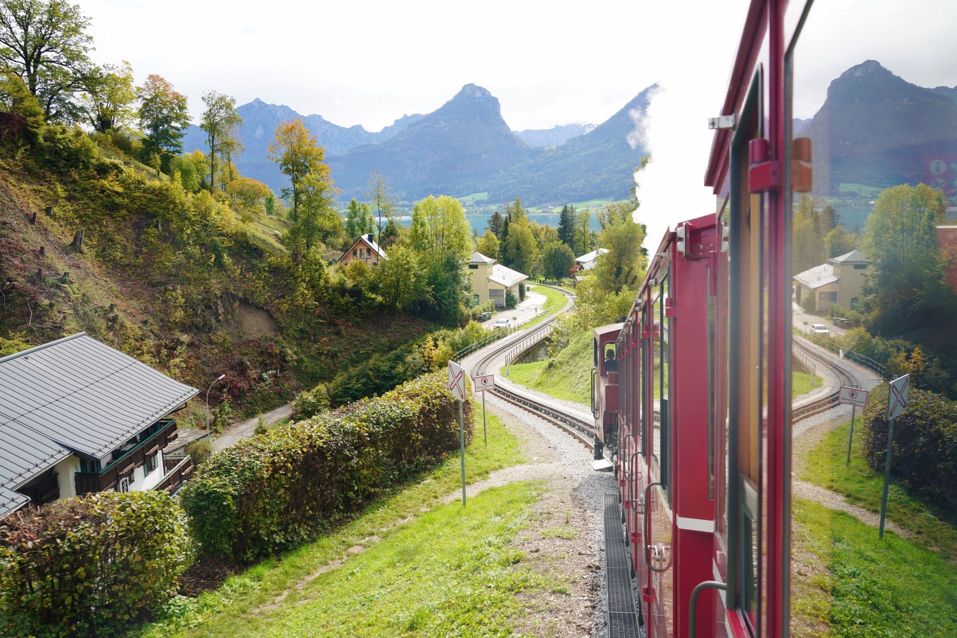 到圣沃尔夫冈的当天是阴天,本来要做小火车到沙夫山上看风景,但是能见度太低,于是决定赌一把,第二天上午无论天气如何都要上山,事实证明,这一把赌赢了,哈哈。第二天居然赶上了那零星几分钟的放晴,真的超级美!