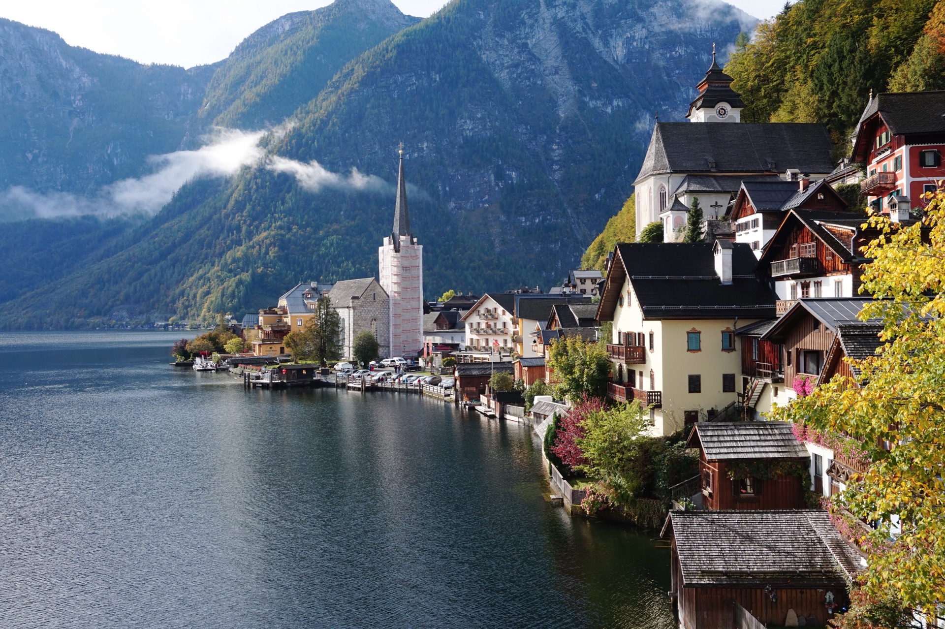 哈尔施塔特不大的一个小镇,但是有不少的旅行团,如果需要拍明信片打卡,尽量早起去拍照。