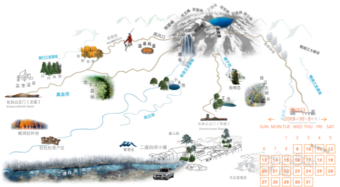 去北坡一定先到二道白河镇,去西坡先到松江镇。没发现北坡西坡之间有官方旅游大巴。