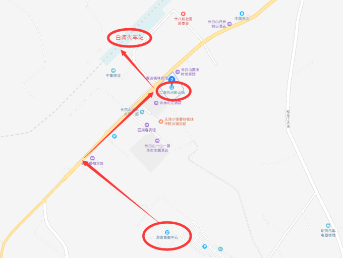二道白河镇的客运站(在池北大街和三江街交汇处),和白河火车站离这不远,客运站的旁边就是去长白山景区的大巴车集散地。