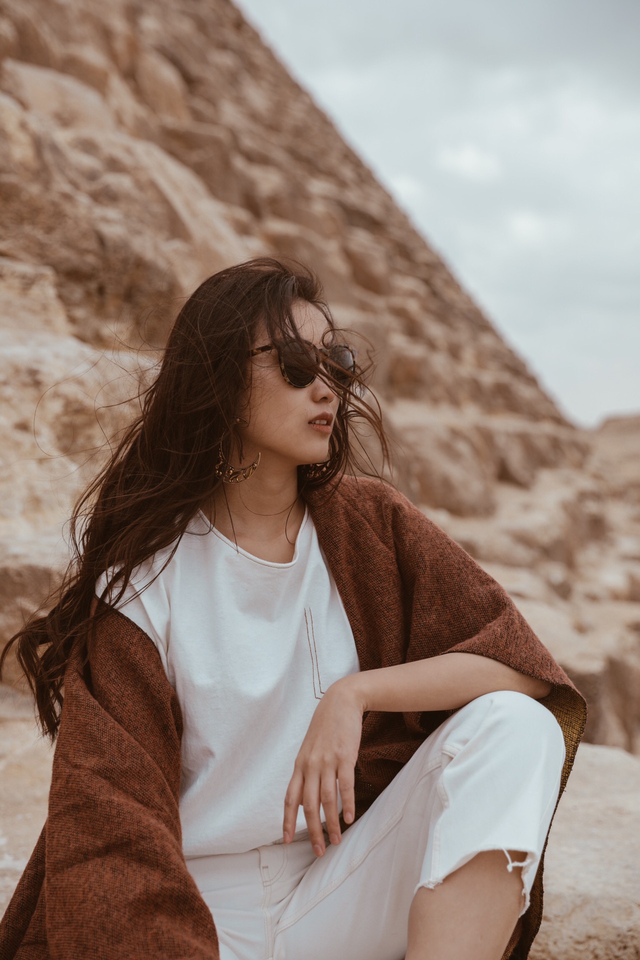 金字塔内部很压抑,走道很狭窄,全程要低头弓腰,幽闭恐惧症患者估计能当场去世……其实也可以从金字塔侧面的楼梯爬上去,坐在旅行的石块上感受一下千年前的古埃及~