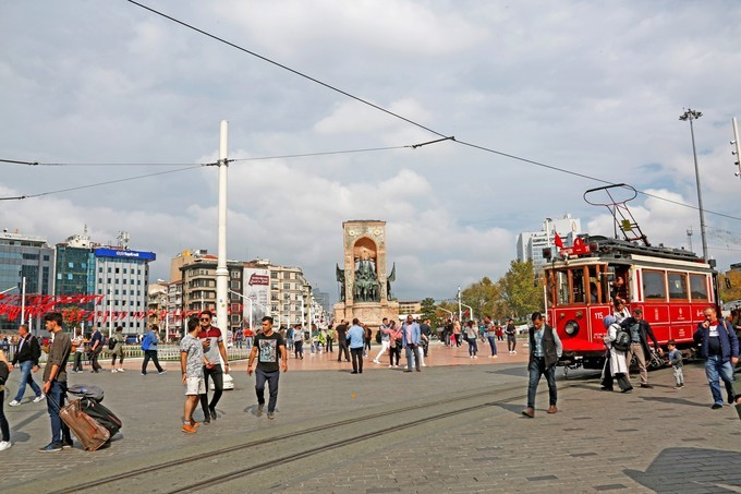 塔克西姆广场 Taksim Square,独立大街的北面终点,住宿比较集中的地方。有观光的红色有轨电车往返独立大街,是网红的拍照打卡处。乘轻轨M2到 Taksim站。从T1轻轨终点 Kabataş站,走路过去大概20m。