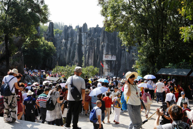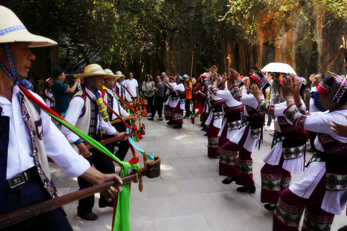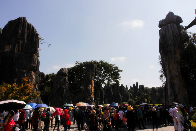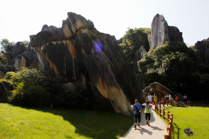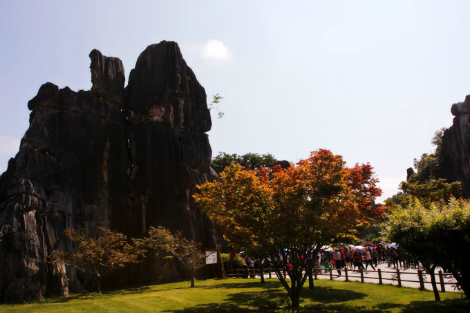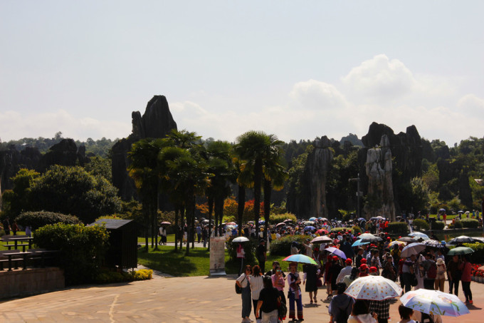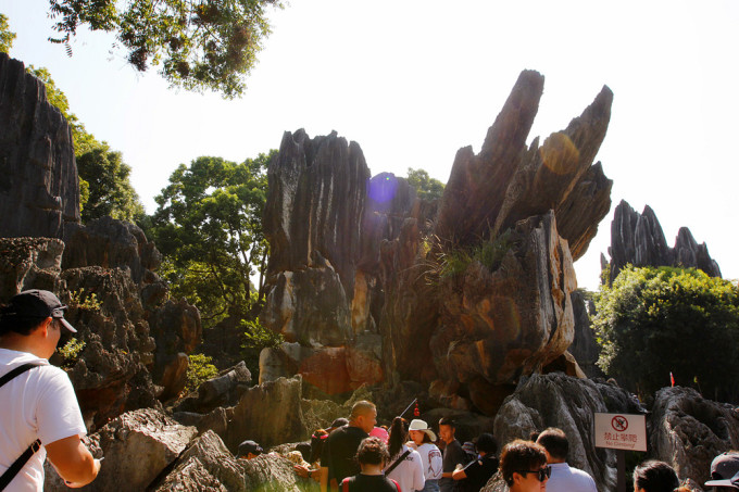 早上来自全国各地的游客集中在了一起,从昆明出发前往石林景区。导游阿炙是一个彝族的小伙子,一路上侃侃而谈,让乏味的长途车程变的有趣起来。