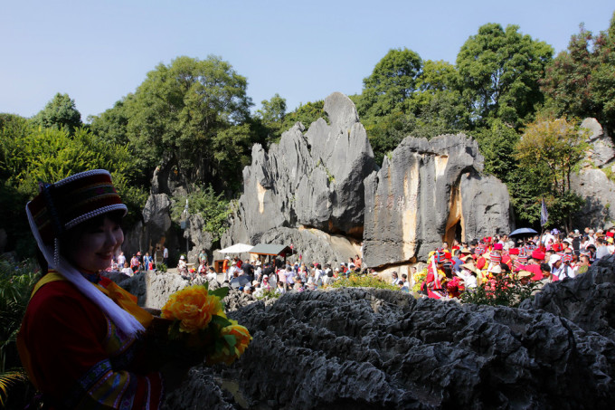 石林景区的导游称阿诗玛,一个漂亮的彝族妹妹。