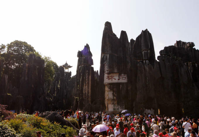 人山人海的,雪柔竟然还没有挤到那个写着石林二字的石柱下面,导游给的时间就到了。只好离开。