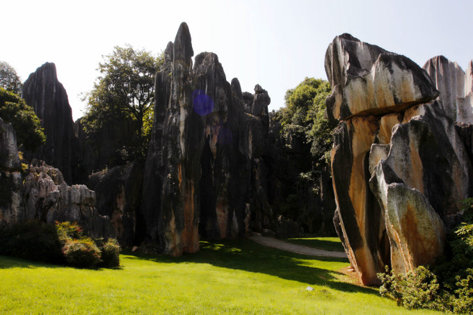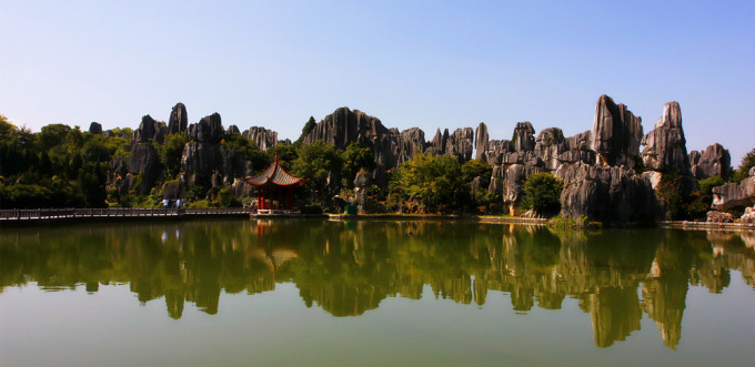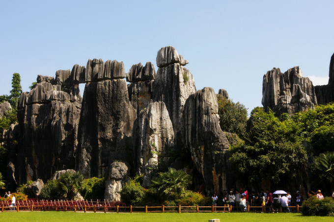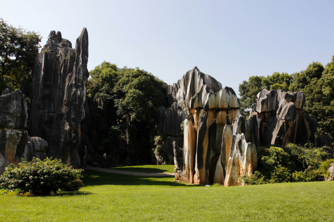 形态奇特的剑状、蘑菇状、塔状、柱状、城堡状、石芽、原野等,拟人似物,栩栩如生的石林,或隐于洼地,或漫布盆地、山坡、旷野,或奇悬幽险,亭亭玉立,集中体现了世界能给予人类的最大惊奇。