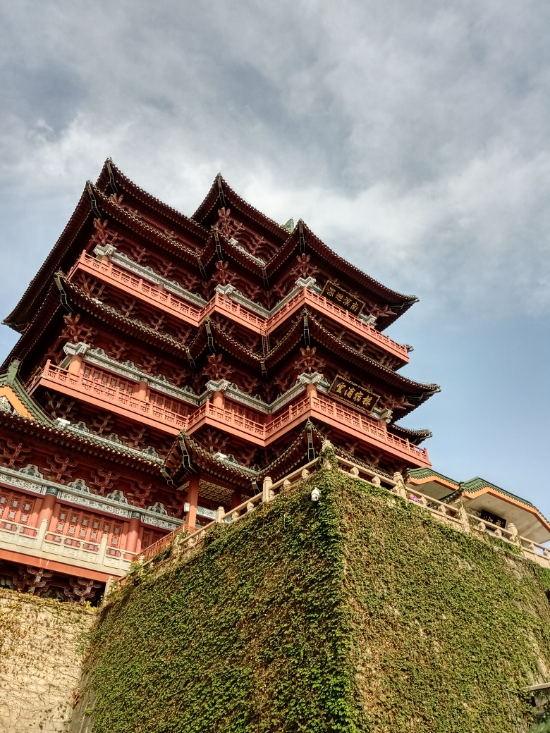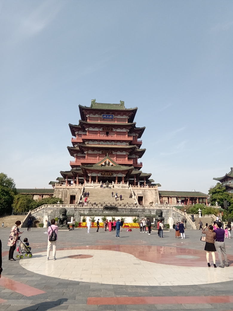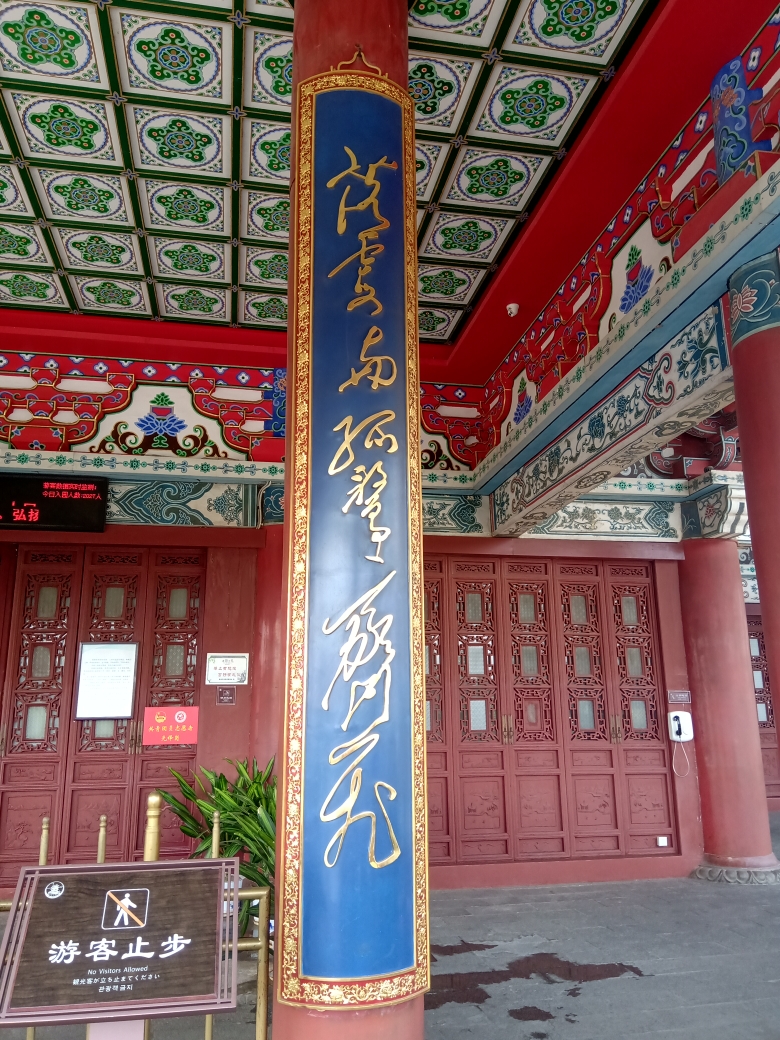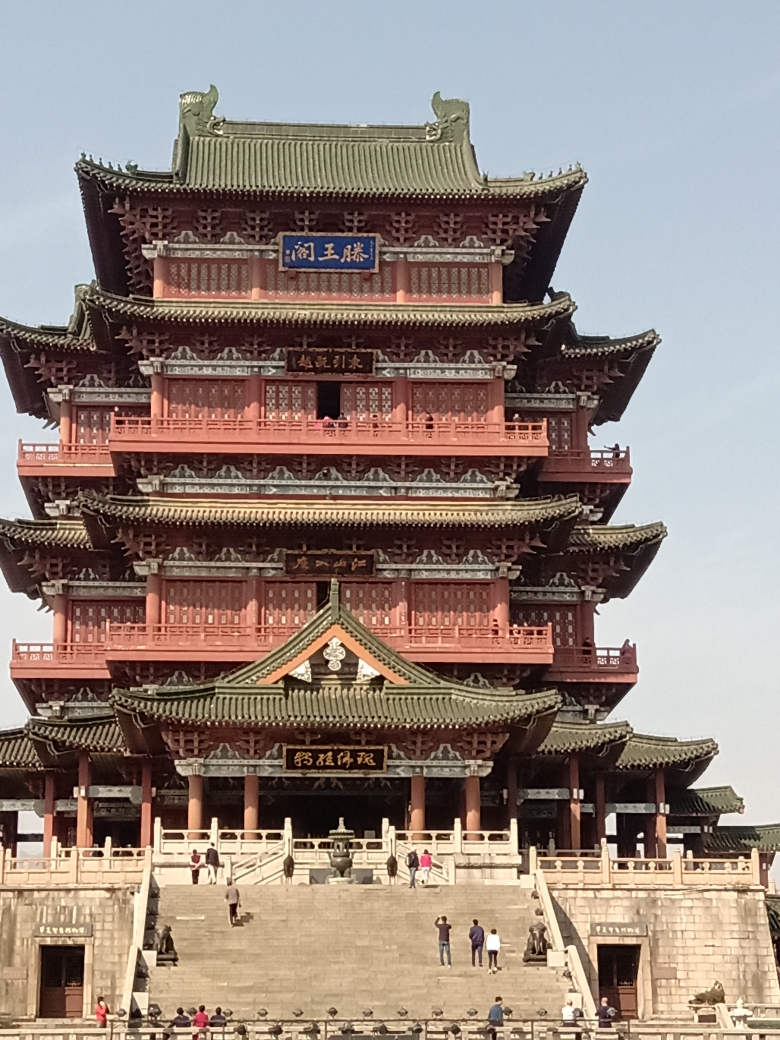 是啊,是啊,上过学的都知道王勃滕王阁序的名句:落霞与孤鹜齐飞,秋水共长天一色。但你看了滕王阁才知道它为什么被形容的如此美丽如此壮观。拾级而上看见毛泽东书写的草书“落霞与孤鹜齐飞”在左“秋水共长天一色”在右。金色大字气魄恢宏。三层北侧有启功先生题写发的“江襟”二字。给图胜过文字。