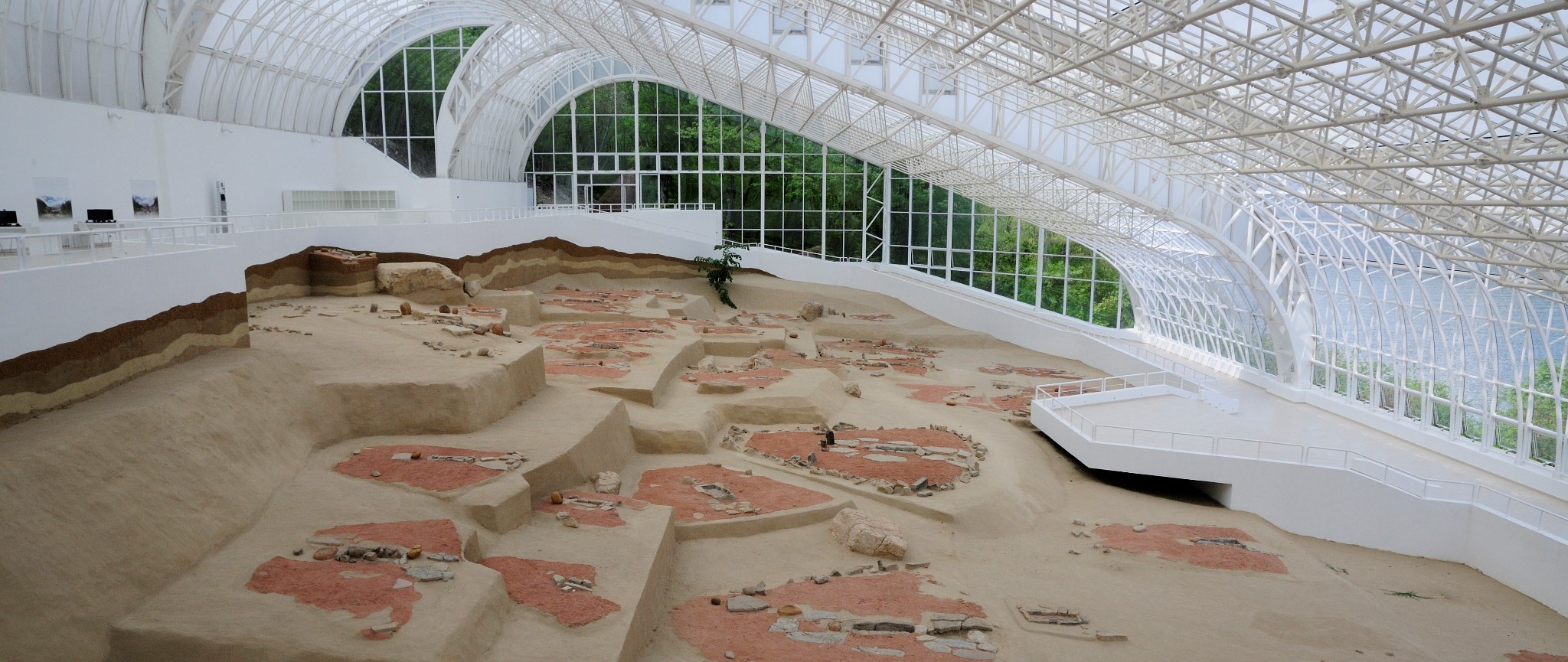 (已被保护的莱潘斯基维尔(Lepenski Vir)文化遗址现场)