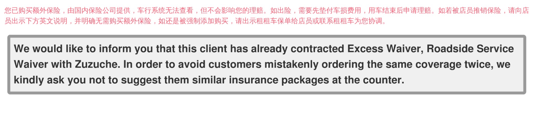 ——主驾驶员:【租租车】平台上默认只能有一个主驾驶人,如果要增加主驾驶人只能到店后现场增加,车行会告诉你多增加人的费用。增加主驾驶人主要是为了车辆出现事故时,证明当前驾驶人是合法有效的,如果当时的司机没有备案,保险是不生效的。额外的主驾驶人一定要出行前确认好,同时也要带着《国内驾照》+《驾照翻译公正件》。