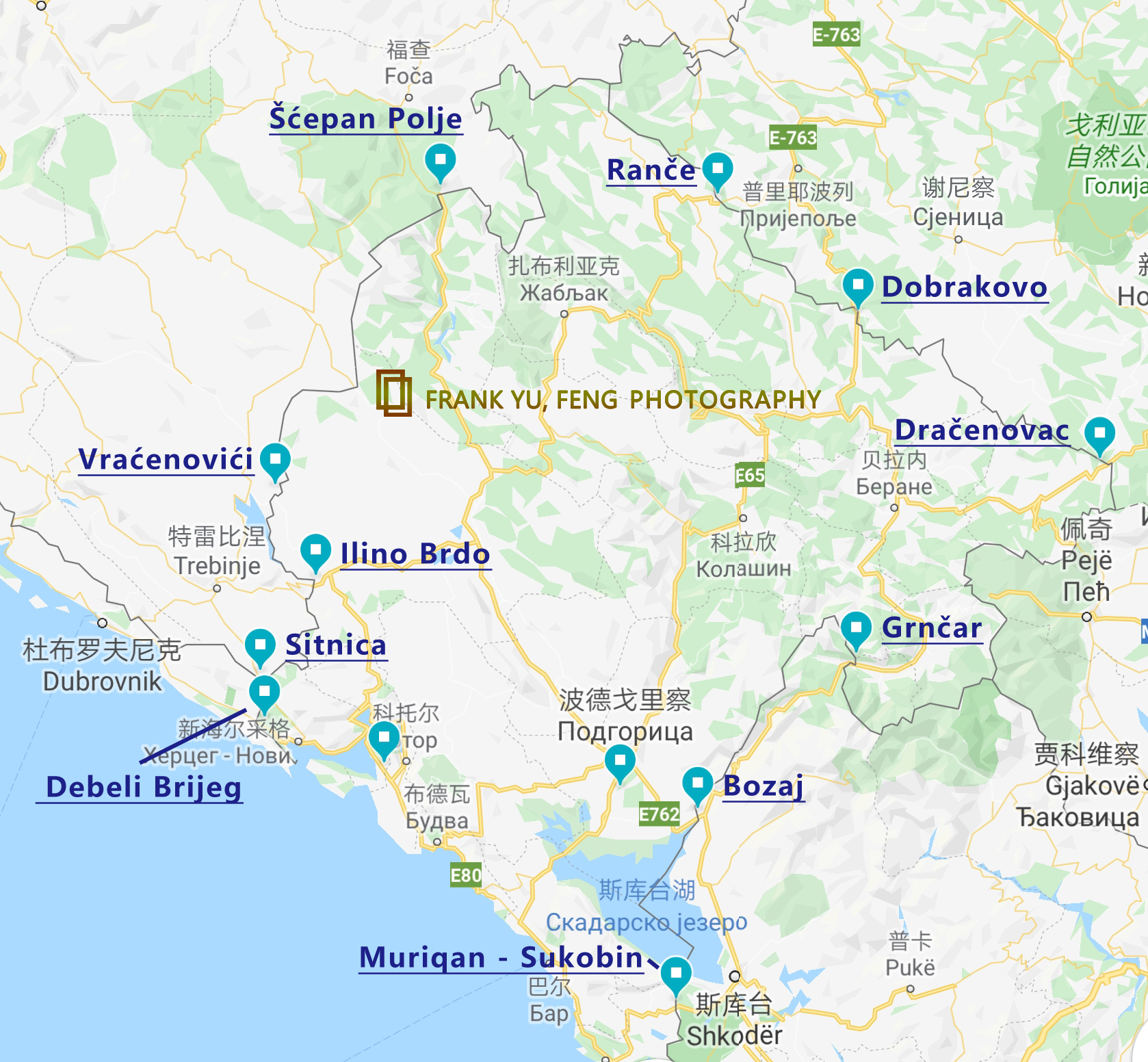 我这次是从最南部的新帕扎尔出关进入黑山,所以从第1个口岸进入,从第5个关口出。我已经将上述所有口岸在google map上以组的形式共享(如下),可以直接访问下面链接获取:https://maps.app.goo.gl/yqa9dFCjsFgqQEBk9