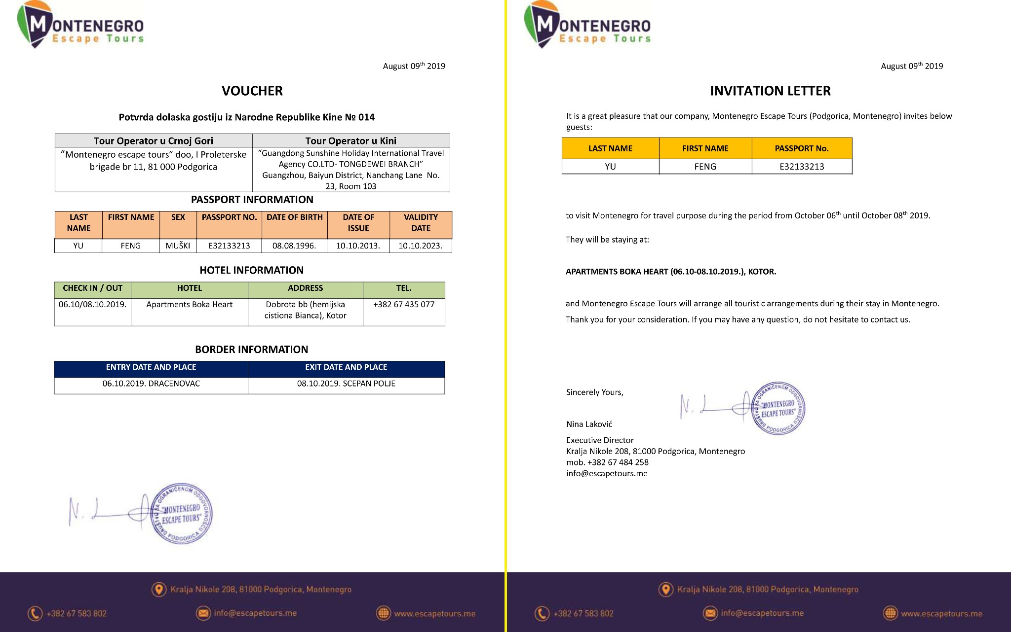 STEP1:首先,确定出入境黑山的日期及交通方式,这一步要求已经把行程做好了,因为“出入境时间”和“关口信息”是要出现在邀请函的“Boder Information”一栏中的,边检要核对,不能有问题。主要准备好以下材料: